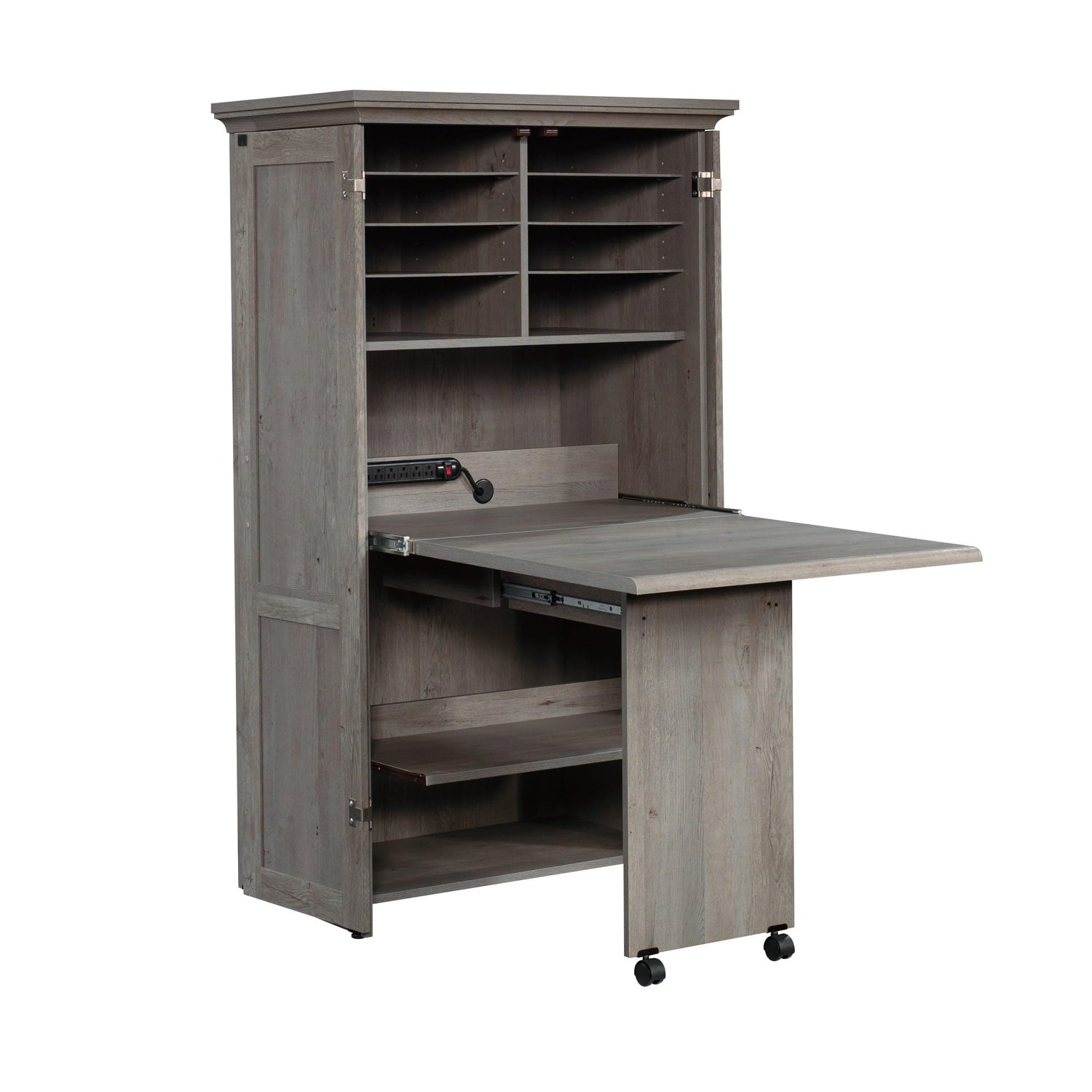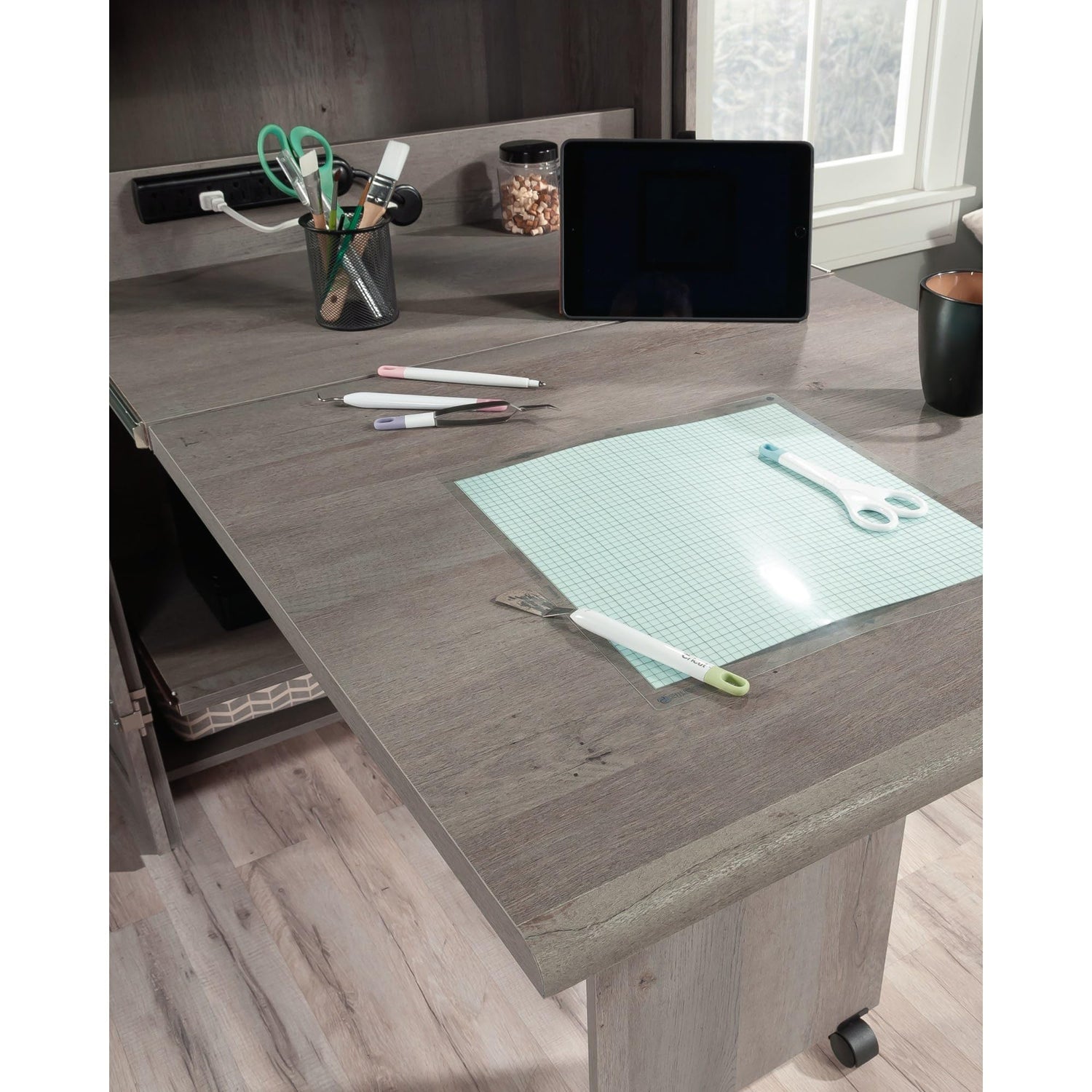 Details: Maximize your space with the Sauder Craft & Sewing Armoire in Mystic Oak Finish, your ultimate crafting or work-from-home station. This versatile piece offers functionality and style, featuring a slide-out shelf with full extension slides and a drop leaf extension for an ample work surface. Imagine pulling up a chair, plugged in and organized, with a built-in power strip and six outlets, crafting away or working on your latest project. Its sleek Mystic Oak Finish complements a range of décor styles, making it a seamless addition to both modern and traditional settings. With six adjustable shelves, it’s easy to organize books, textiles, and more. This multifunctional armoire stores every tool and notion, while keeping your space tidy. Picture it in your living room or home office, simplifying and beautifying your life. Make the most of your square footage with the perfect blend of design and utility.