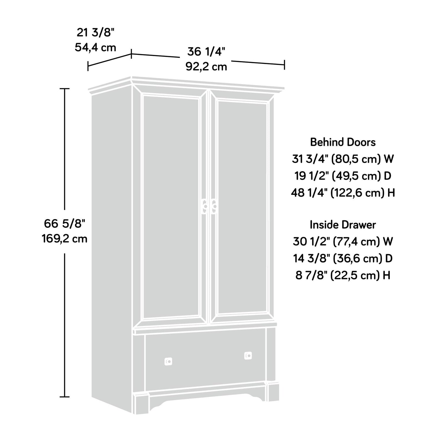 - SPACIOUS DIMENSIONS – DIMENSIONS – Measures: L: 36.30" x W: 21.42" x H: 66.77" for a perfect fit in your space