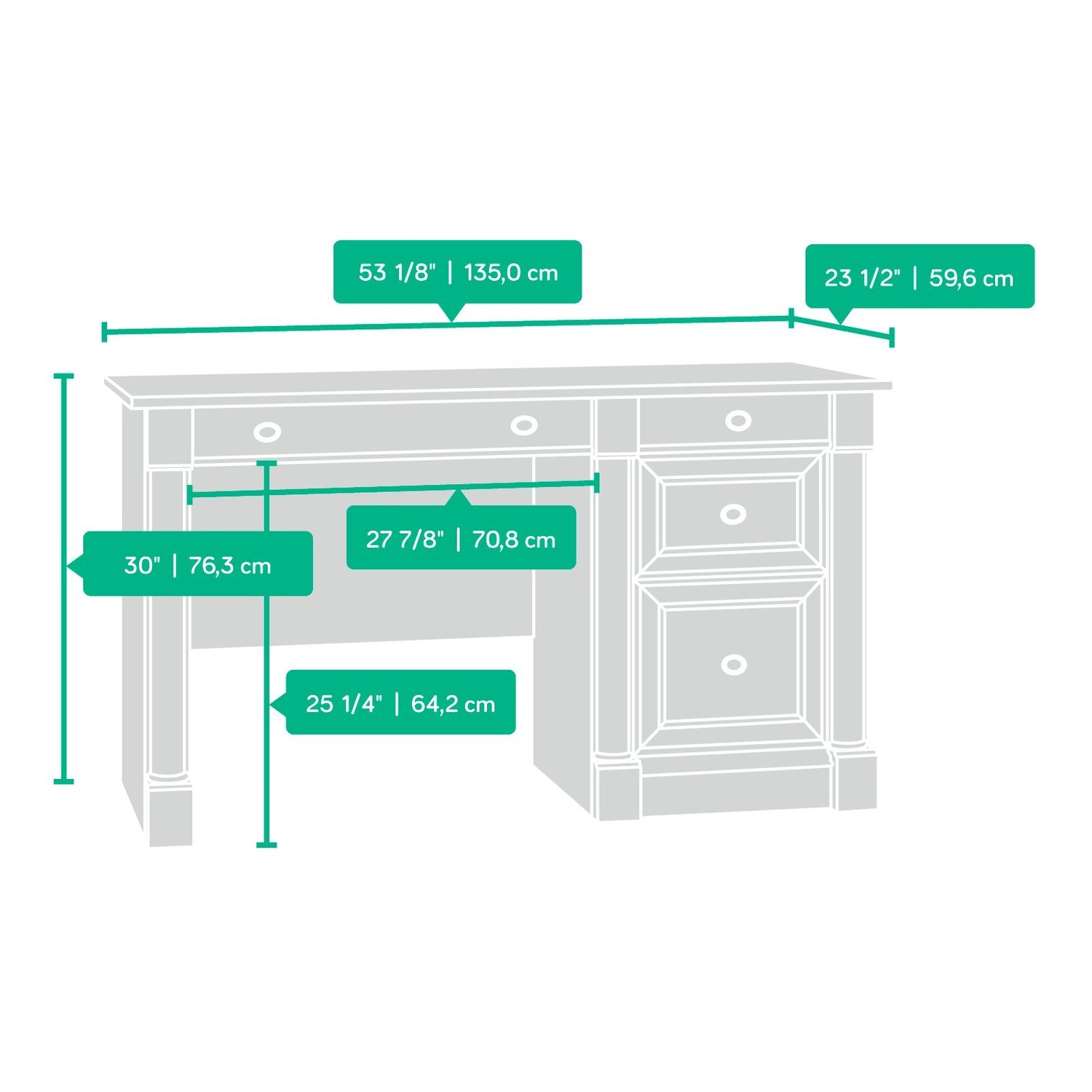 Details: Give your home office or workspace a classy update with this computer desk from the Palladia collection. Its spacious top surface provides you with ample amount of room for all your must-have desk essentials like your laptop, folders and documents, a cup full of pens and of course a place to set your coffee. It features a large drawer/shelf that includes a flip-down panel for your keyboard/mouse. It also features two small storage drawers that open and close on smooth metal runners for easy access storage of other miscellaneous office items. The lower drawer with full extension slides holds letter-size hanging files to help keep you organized. With its elegant design and beautiful style, this desk is sure to complement no matter where it stands in your home. Finished in Select Cherry and detailed with silver hardware, this attractive desk will have you feeling motivated and ready to get the job done. Assemble your unit on a carpeted floor or on the empty carton to avoid scratching your unit or the floor.