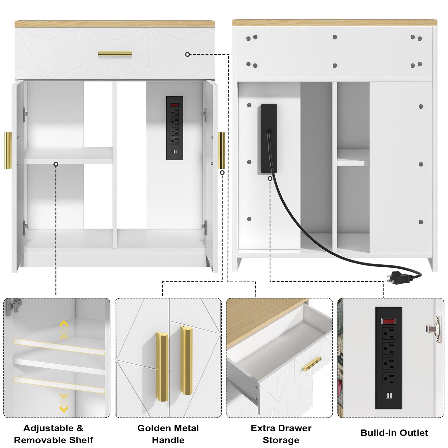 Saudism 20 Gallon Fish Tank Stand with Charging Station, 10 Gallon Aquarium Stand, White Tank Stand, Fish Tank Table with Drawer and Cabinet, Sturdy and Durable