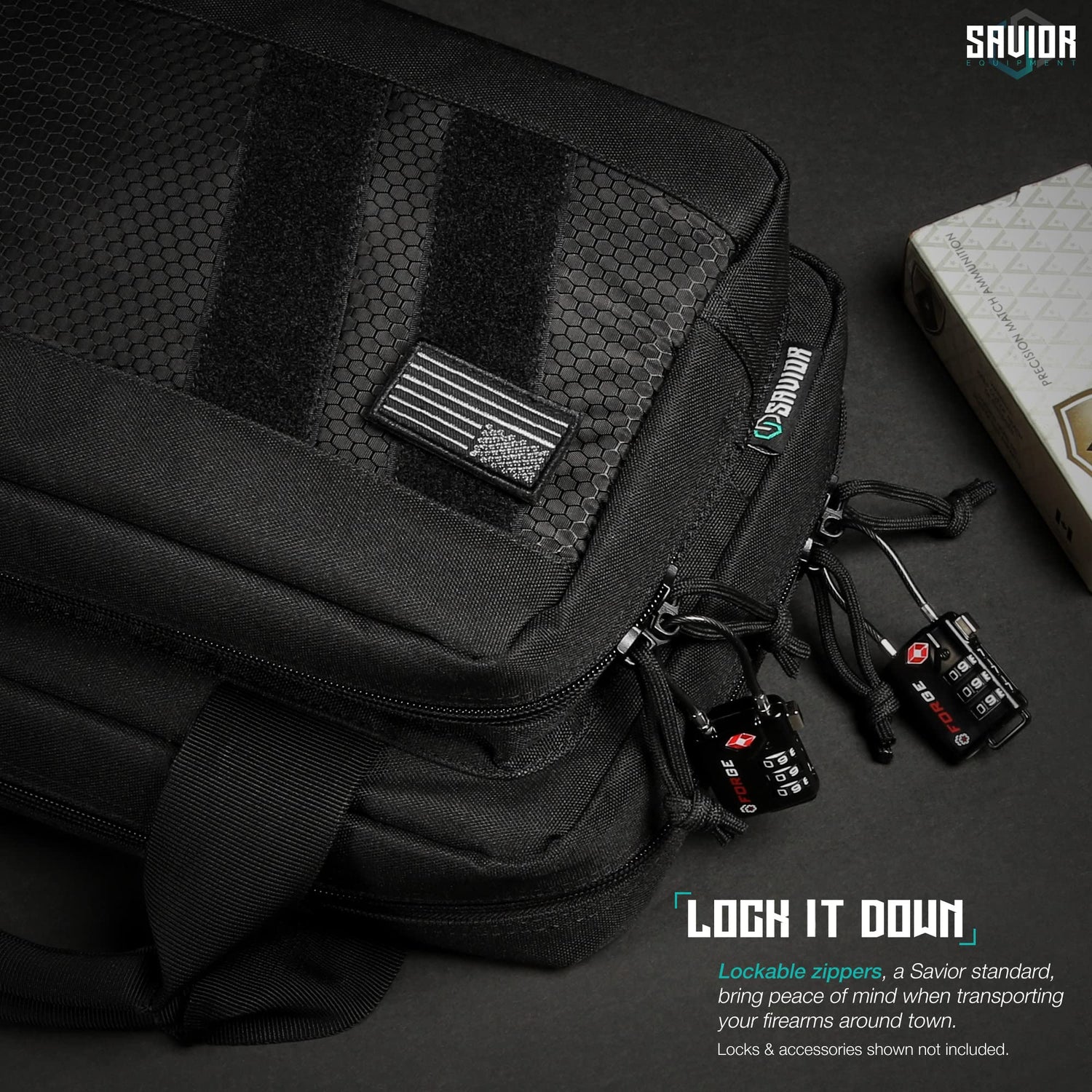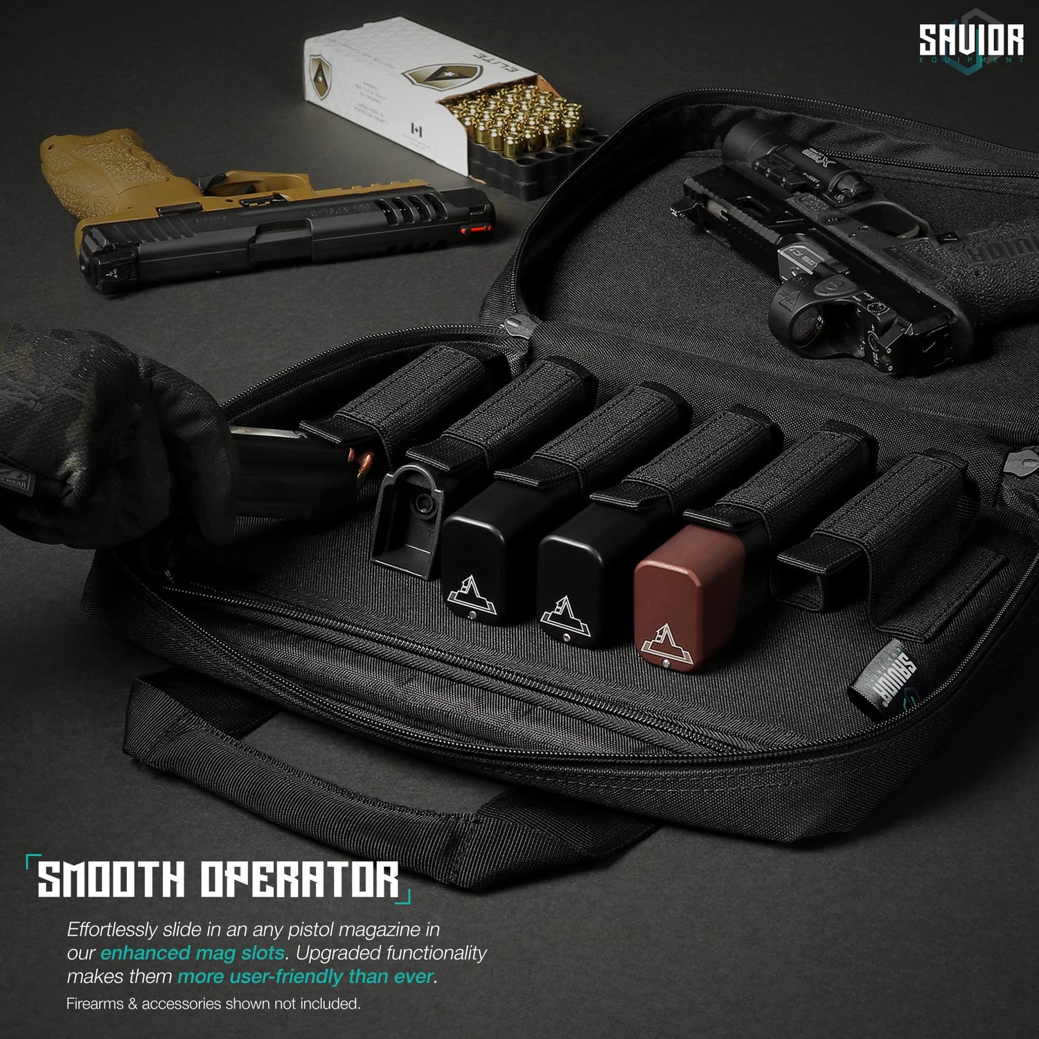 Savior Equipment Specialist Series Tactical Double Scoped Handgun Firearm Case Pistol Bag for Outdoor Hunting Shooting Range, Lockable Compartment, Additional Magazine Storage Slots