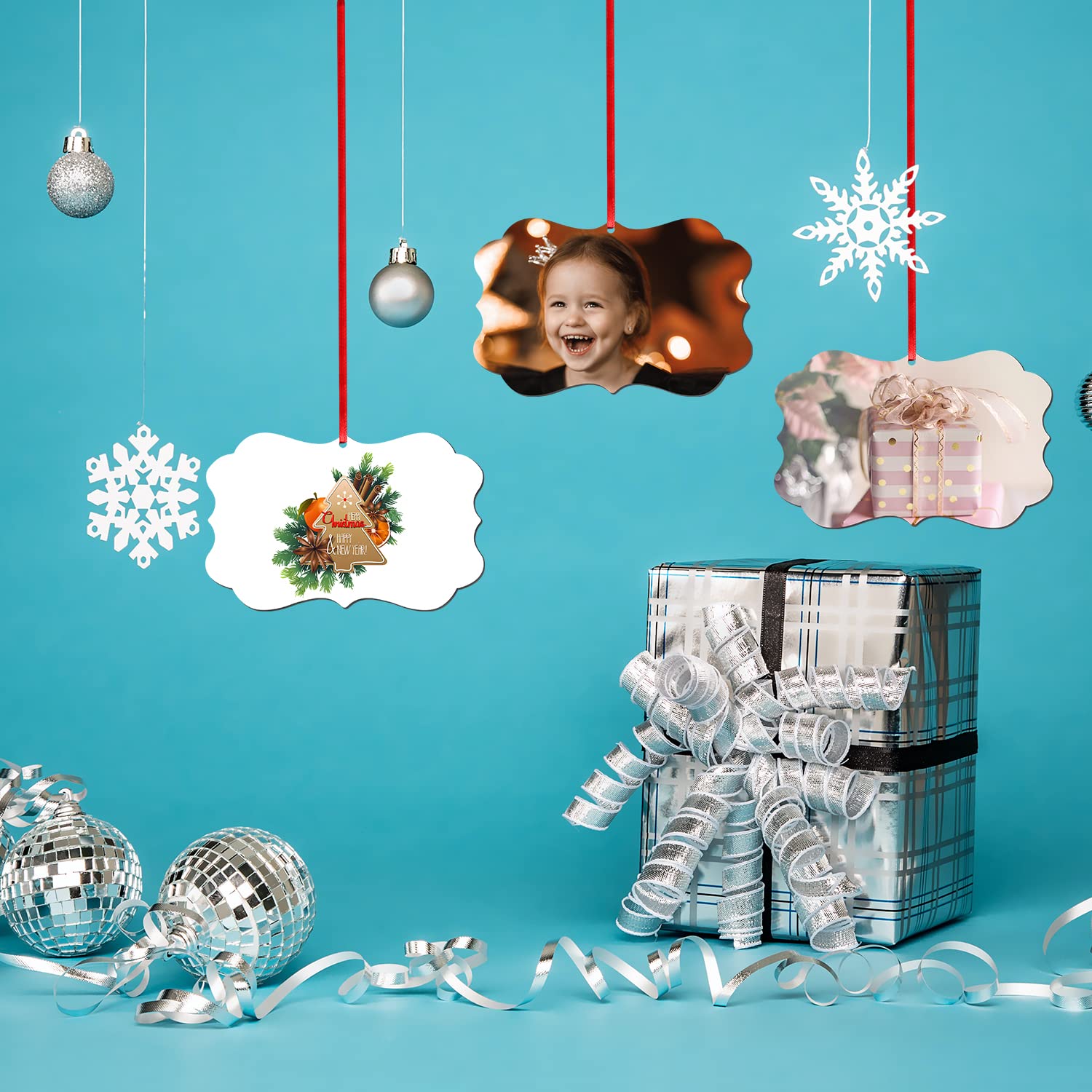 - Package Includes: You will receive 15 sublimation blanks pendants and 15 red hanging ribbon, enough to meet your needs for making different DIY crafts. Note: Use color inkjet paper, do not use heat transfer paper; if there is a pressure display machine, the pressure of the machine should reach about 5.