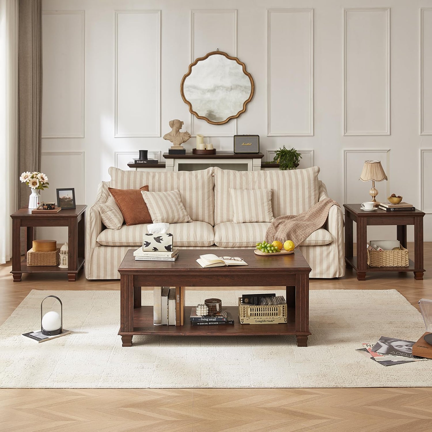 - [Farmhouse Wood Coffee Table] :This Square living room tables, featuring a vintage textured design paired with an elegant texture, combines farmhouse style with modern style and is the ideal match for your living room furniture.