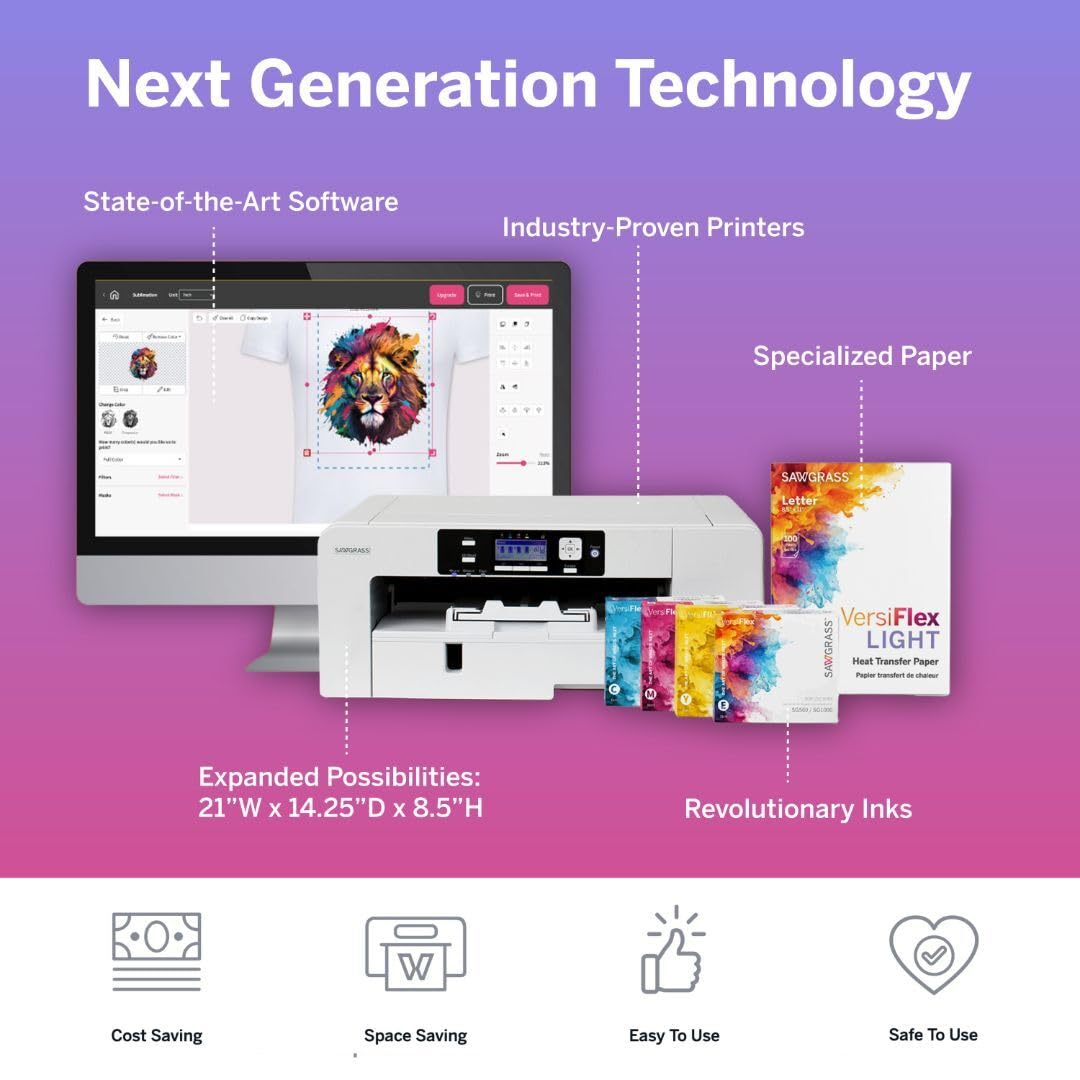 Sawgrass SG500 VersiFlex Printer Bundle, Innovative Inks & Light Heat Transfer Paper Bundle - Soft-Touch Infusible Ink, 8.5x11 Paper - Professional Results on Untreated Fabric and Wood