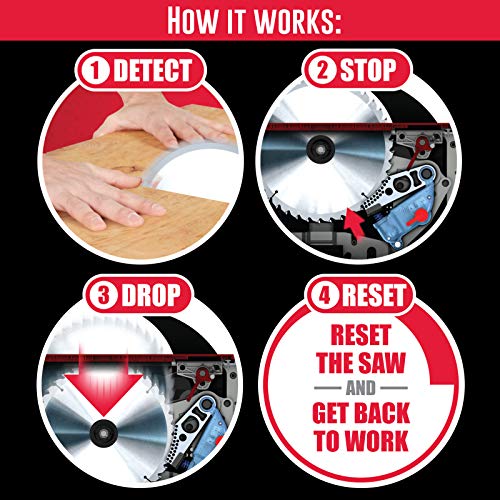 • SAWSTOP PATENTED SAFETY SYSTEM: Stops a spinning blade on contact with skin. The blade stops in less than 5 milliseconds, and drops below the table, minimizing a potentially life-altering injury to a mere scratch
