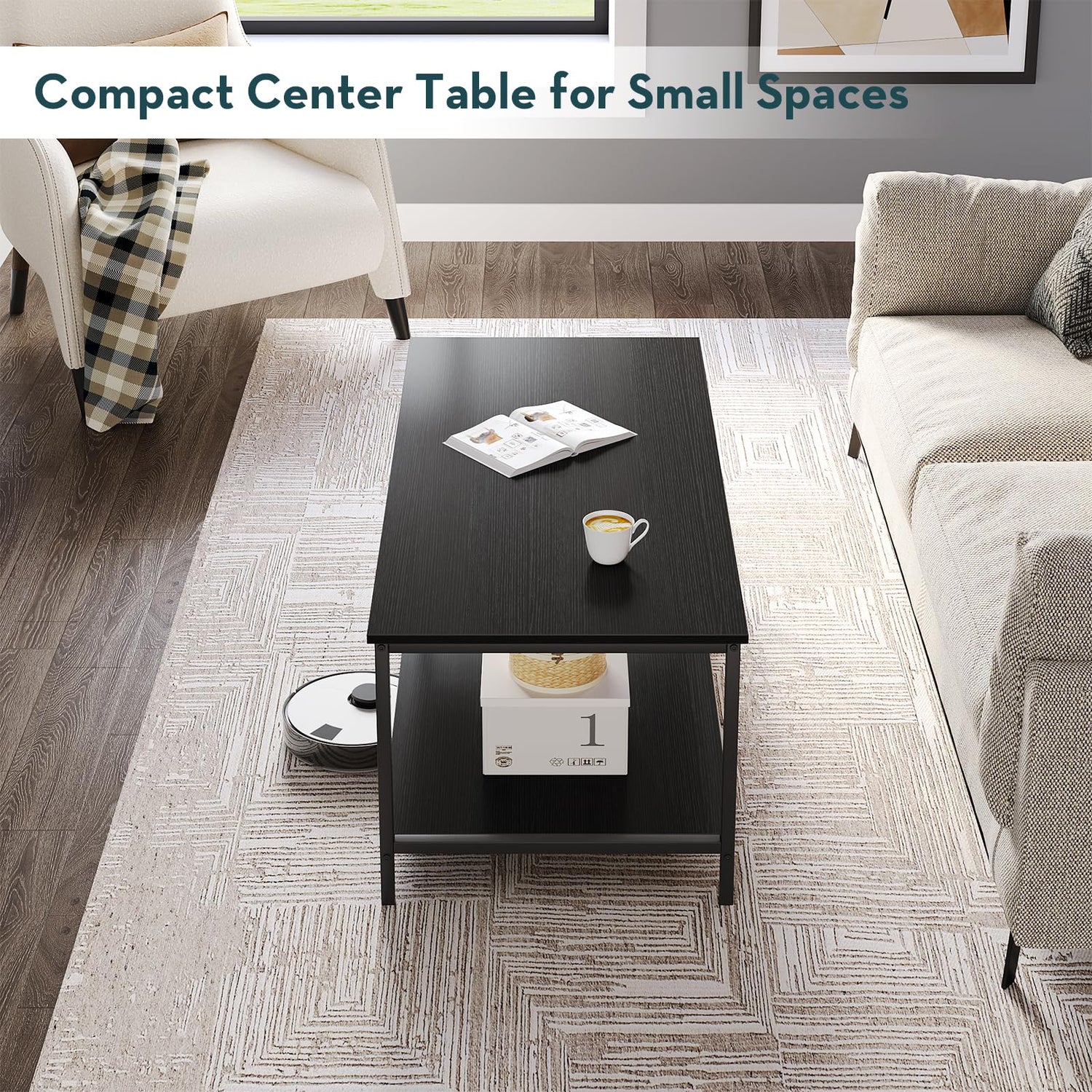 - 【Stable & Durable】Coffee table for living room is made with strudy materials, including thick boards and legs, to ensure its sturdiness and durability. You can trust that this coffee table will withstand the test of time. Size in 39.4*19.7*17.7 inches, perfect for dorm rooms, small apartments or large spaces.