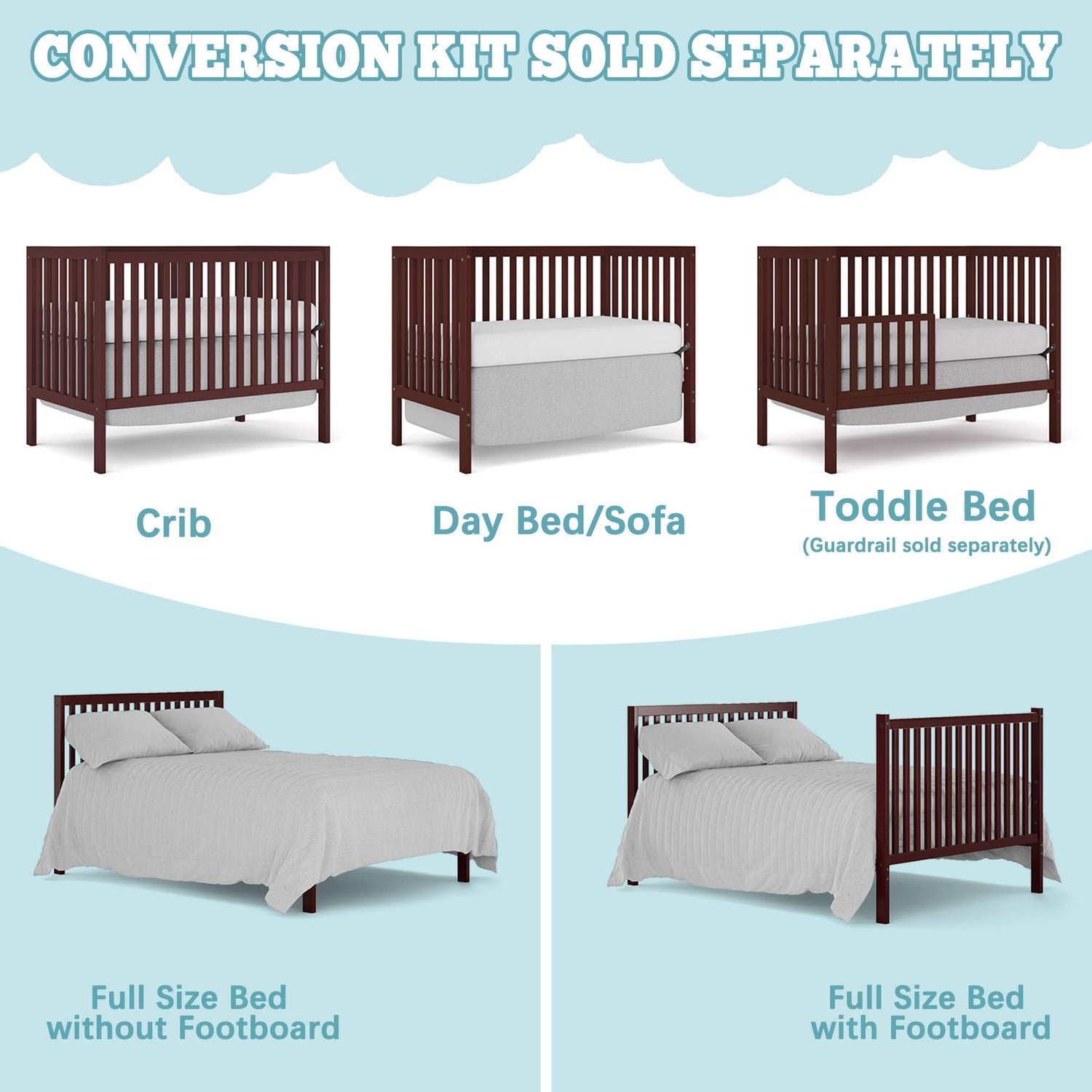 Saylike Baby Crib 5-in-1 Convertible, Wood Full Size Toddler Bed for Small Baby, Made of Sustainable Natural Pinewood Cribs, Non-Toxic Finish, Simplistic Nursery Furniture (Espresso)