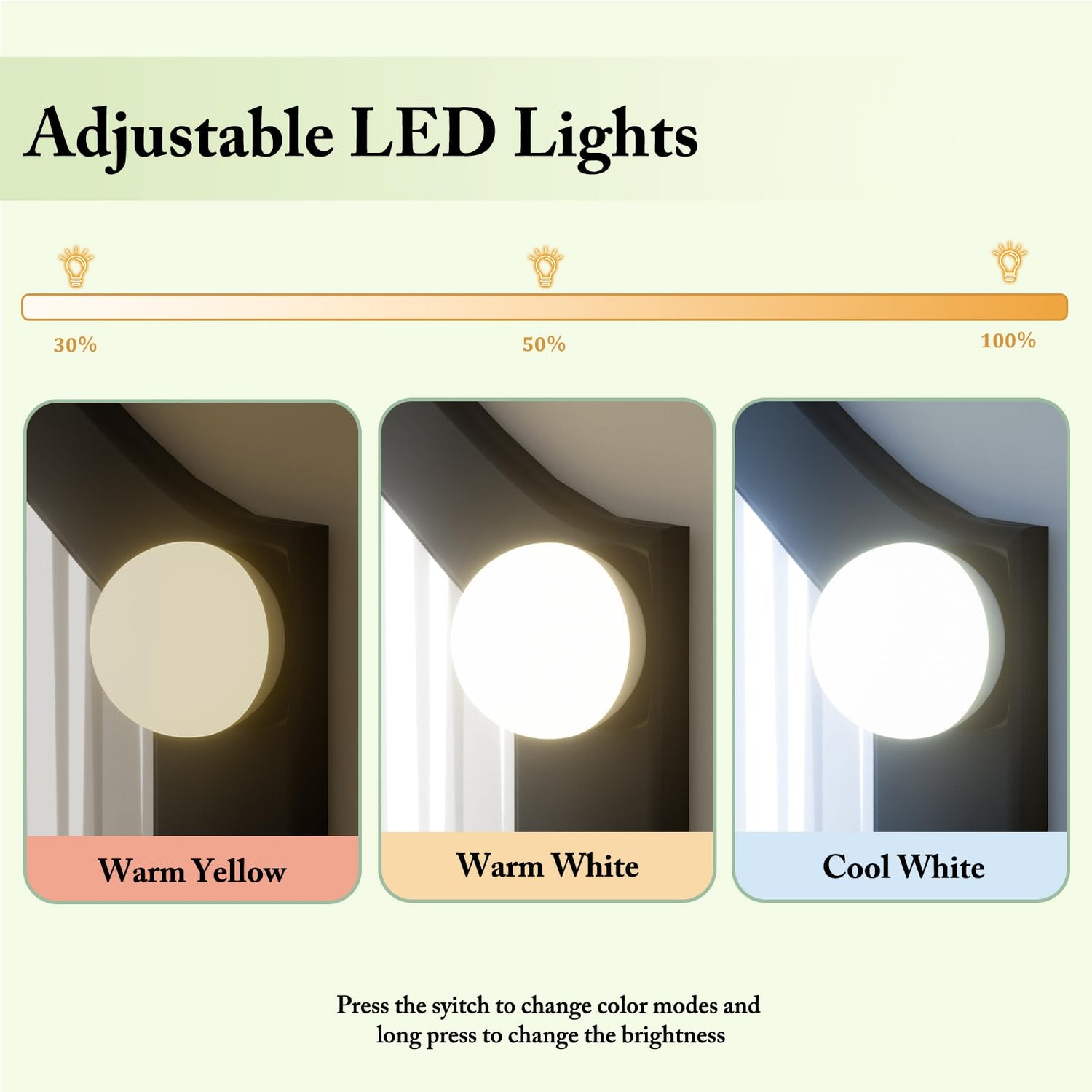 - 【3 Different Light Modes】The vanity desk with mirror features LED light with 3 different options: warm yellow, warm white and cold white light. You can also change the brightness according to different makeup needs.