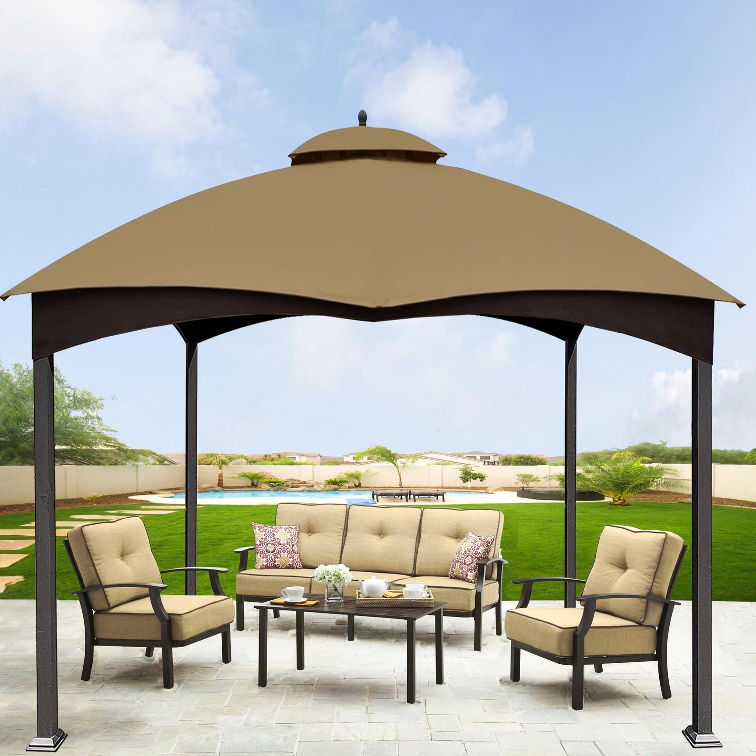 SCOCANOPY Replacement Top for Lowe's Allen Roth 10X12 Gazebo Model #GF-12S004B-1/#GF-12S004BTO/#TPGAZ17-002C (Khaki)