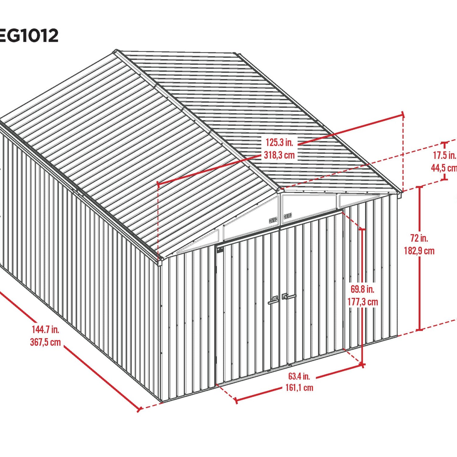 - GARDEN STORAGE SHED: 10' x 12' outdoor shed is constructed from Galvalume, an aluminum and zinc plated steel known for its exceptional corrosion resistance