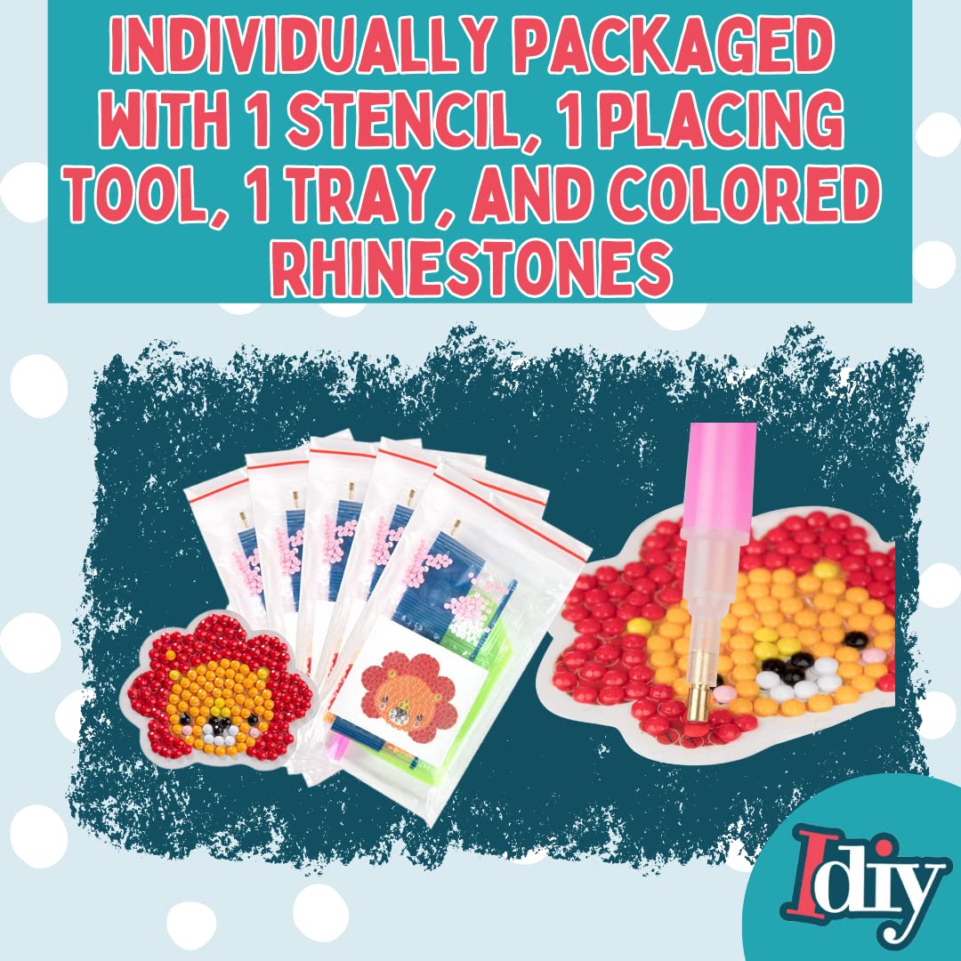 - 20 Zoo Animal Paint by Number Rhinestone Craft Kits for Boys and Girls, Individually Wrapped
