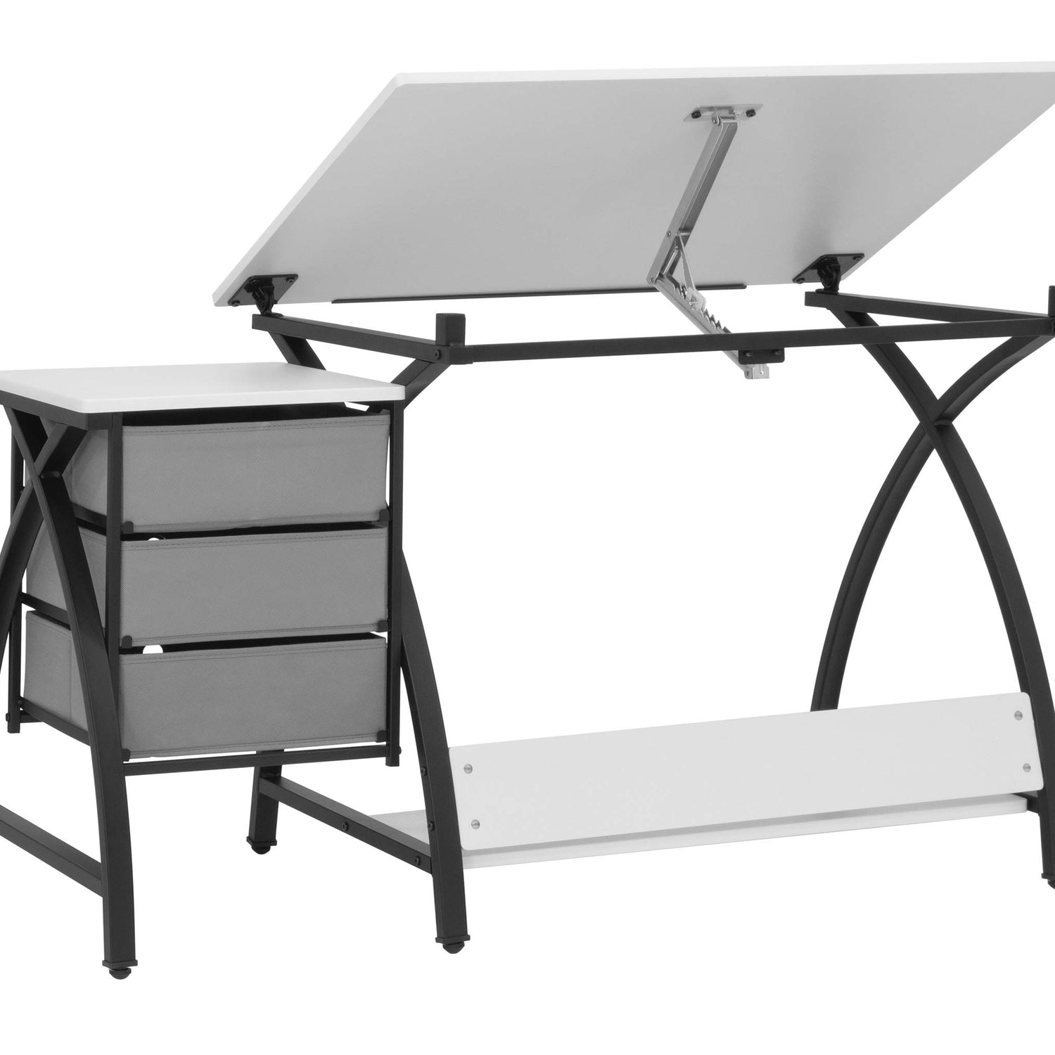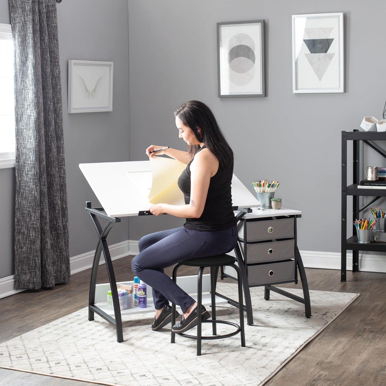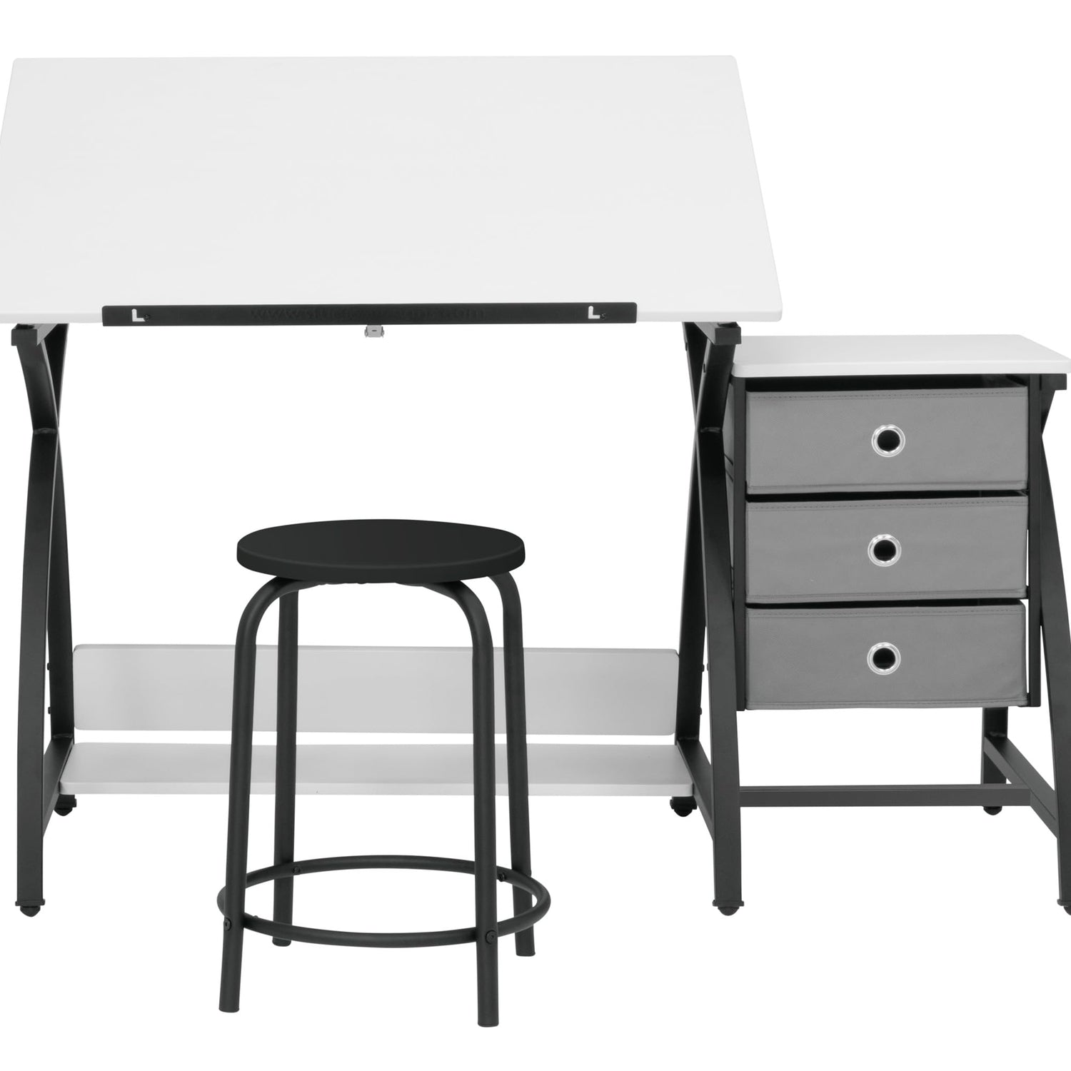 SD STUDIO DESIGNS 2 Piece Comet Center Plus, Craft Table and Matching Stool Set with Storage and Adjustable Top, Black/White, 50x23.75x29.5 inches