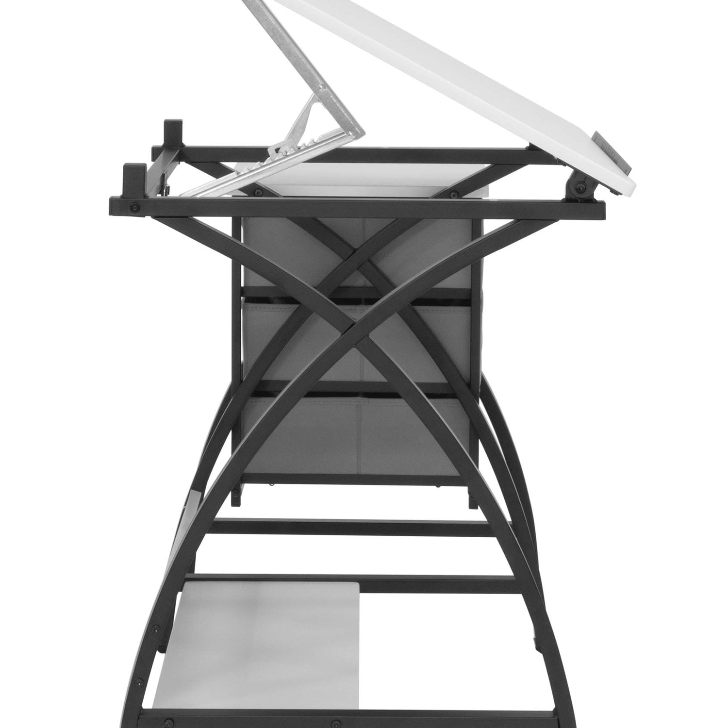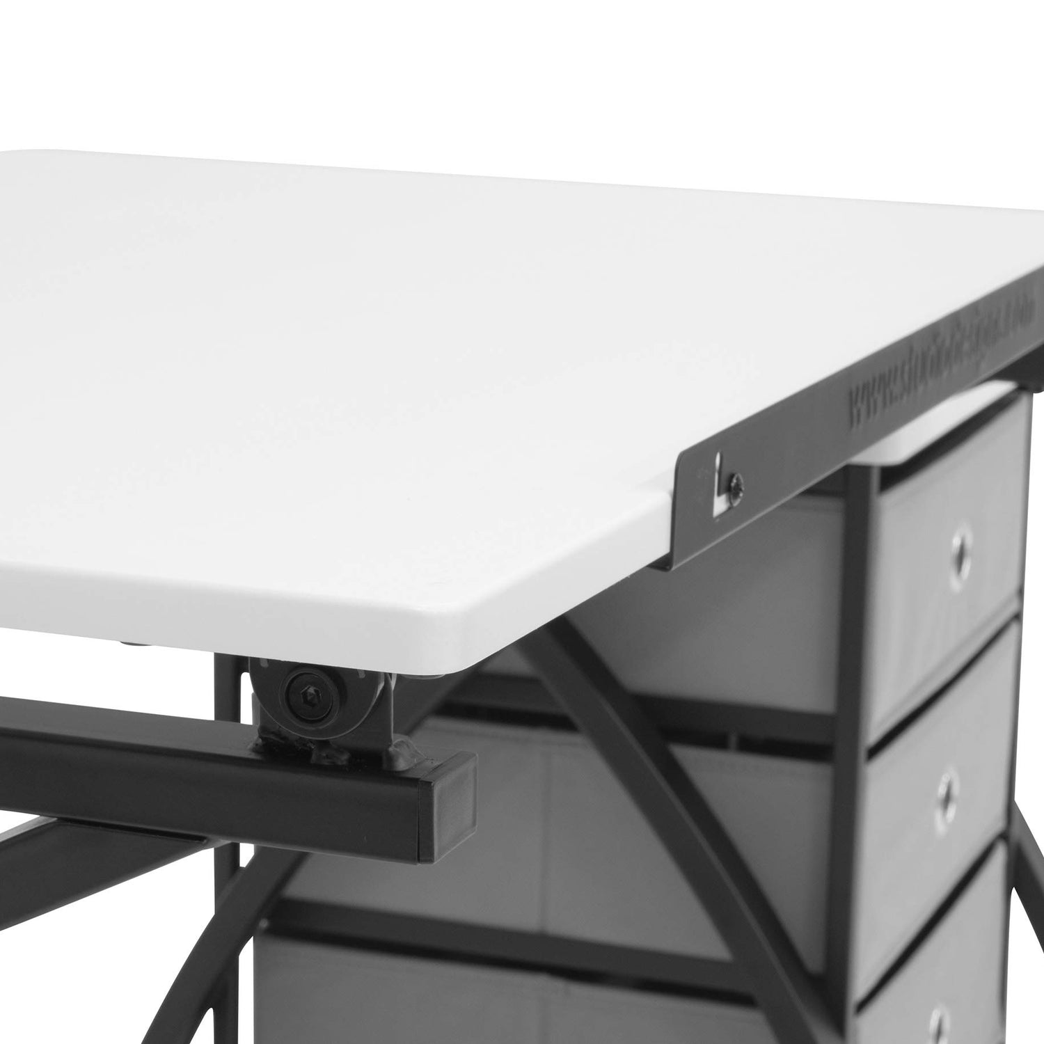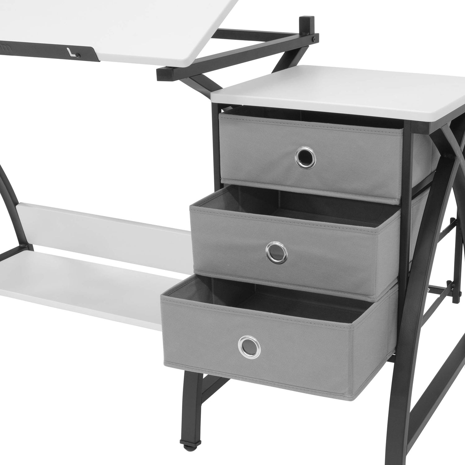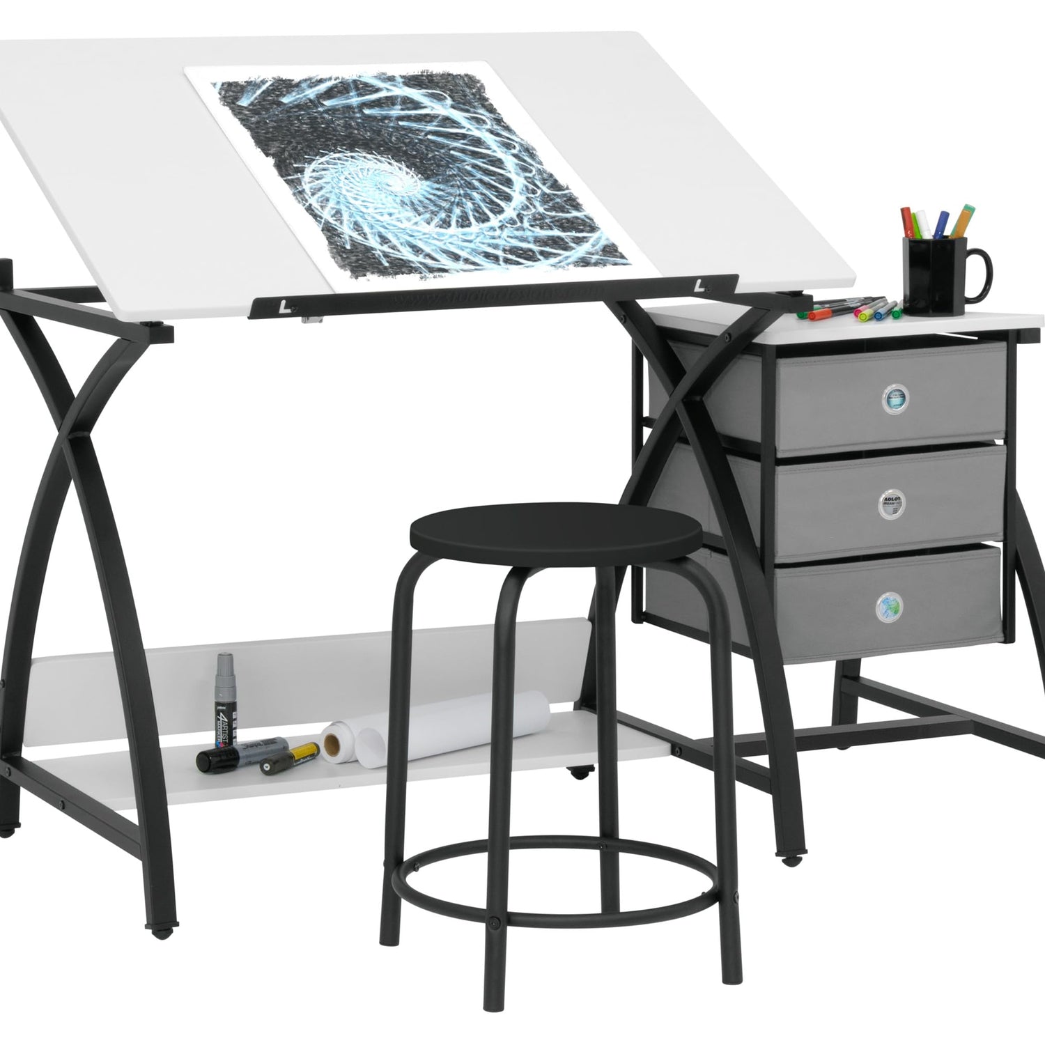 SD STUDIO DESIGNS 2 Piece Comet Center Plus, Craft Table and Matching Stool Set with Storage and Adjustable Top, Black/White, 50x23.75x29.5 inches