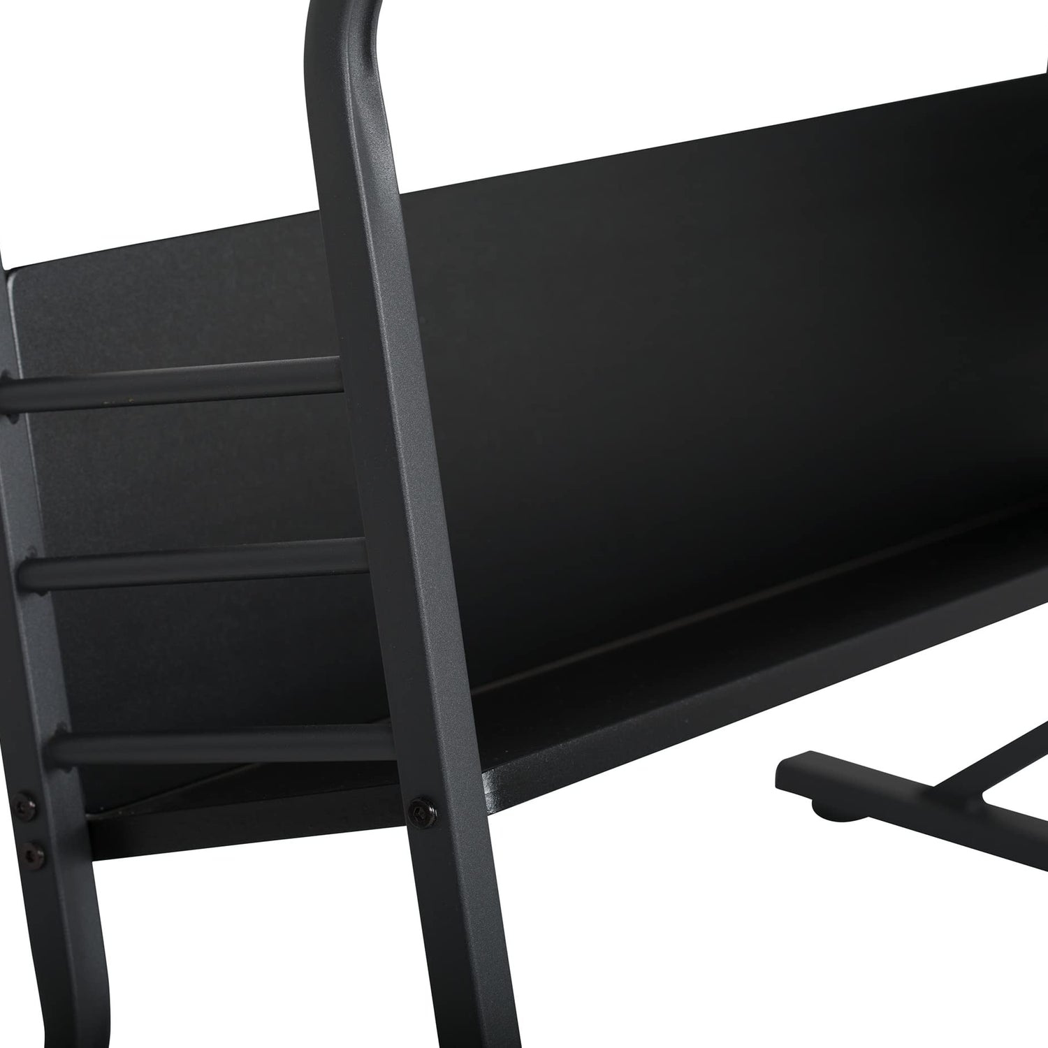- DURABILITY AND STABILITY: The durable heavy gauge steel construction includes a powder coated frame and vinyl laminate top to resist scratches. The six floor levelers adjust stabilize the desk on uneven floors.