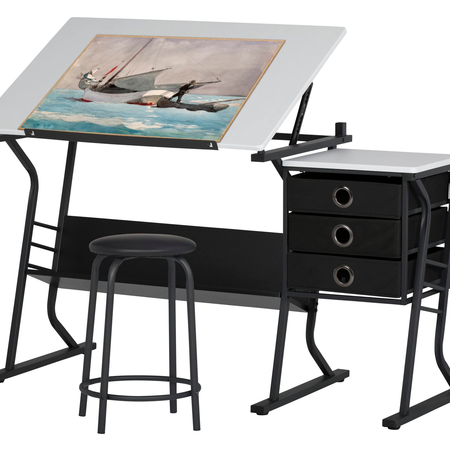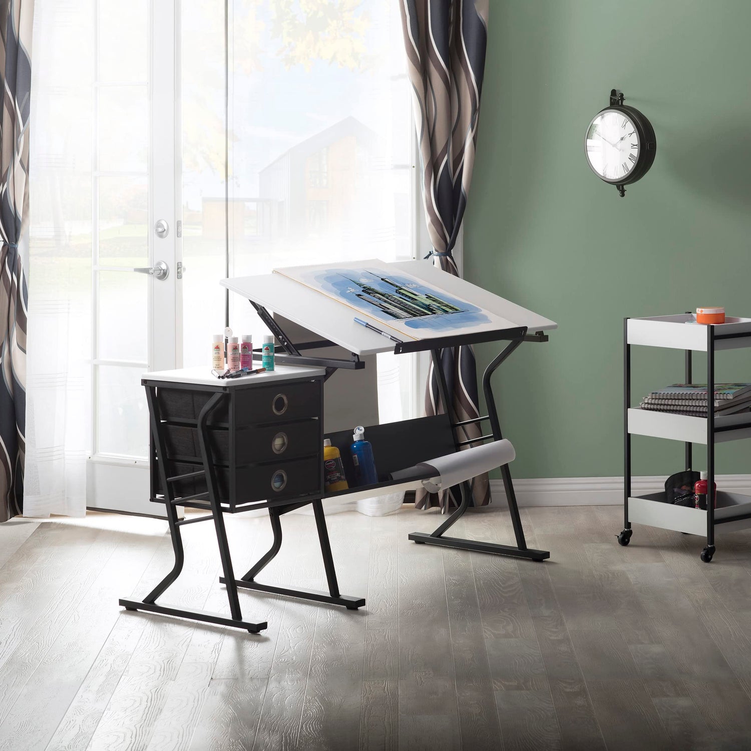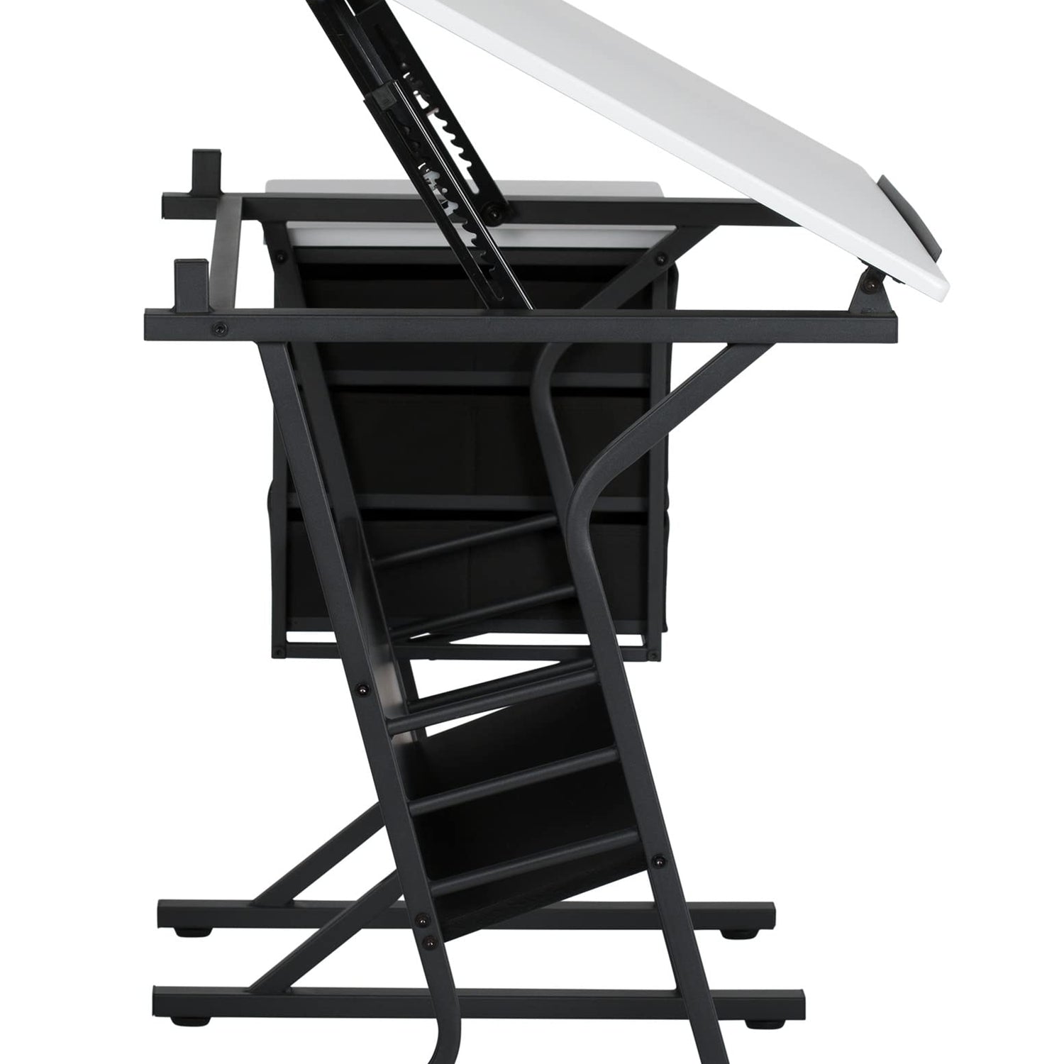SD Studio Designs 2 Piece Eclipse Ultra Center/Drawing Table with Stool, Angle Adjustable Top, Storage Shelves, and Drawers