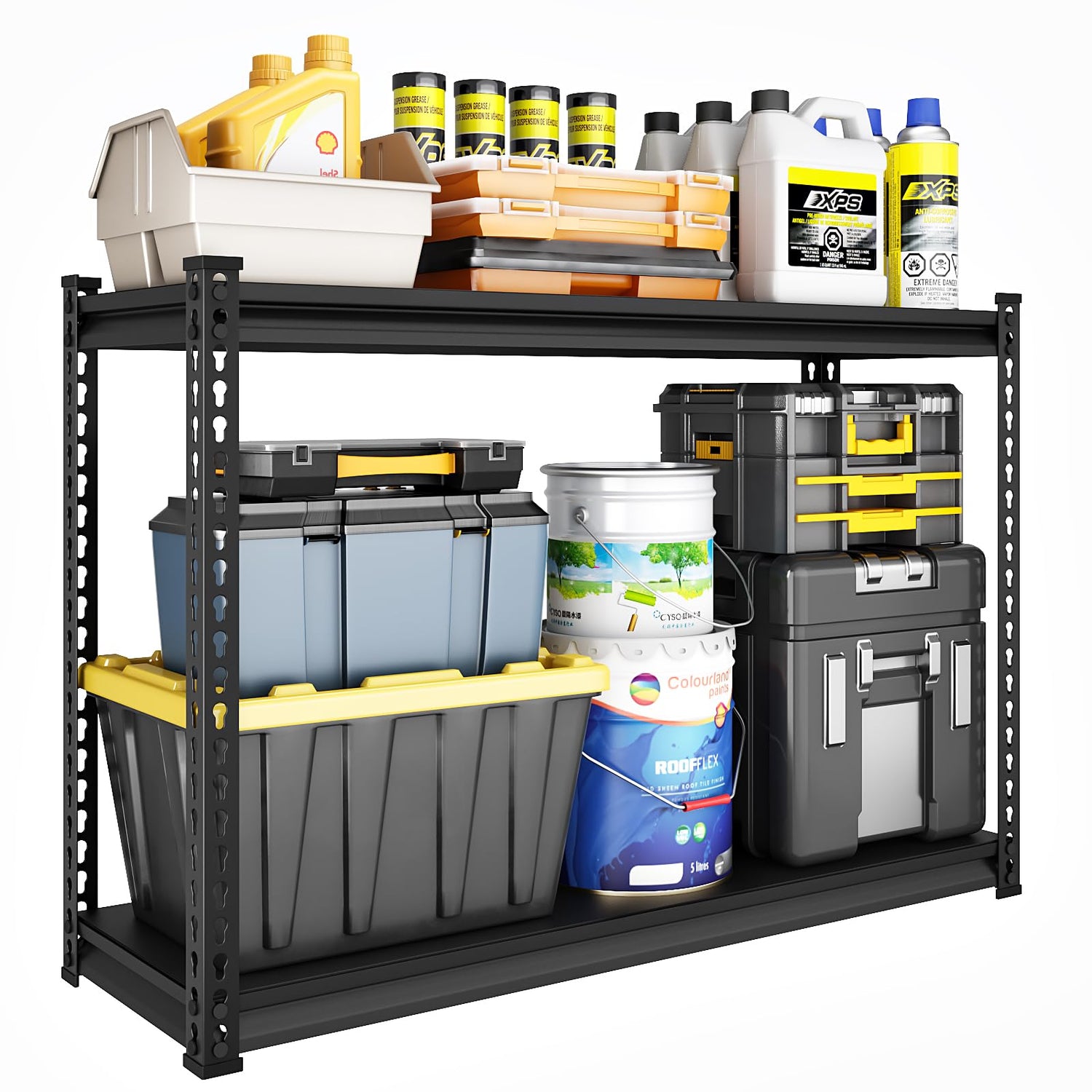 SDXYSTCE 48" W Garage Shelving Heavy Duty, 1000LBS Loads Adjustable Garage Storage Shelves, 2-Tier Metal Shelving Units and Storage Racks, Industrial Utility Shelf,48" Wx18 Dx39 H, Black
