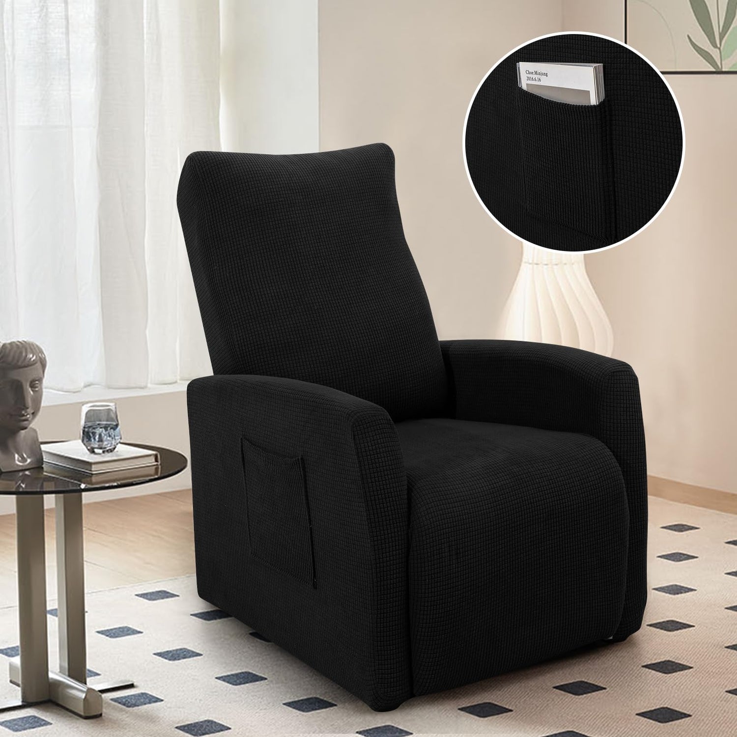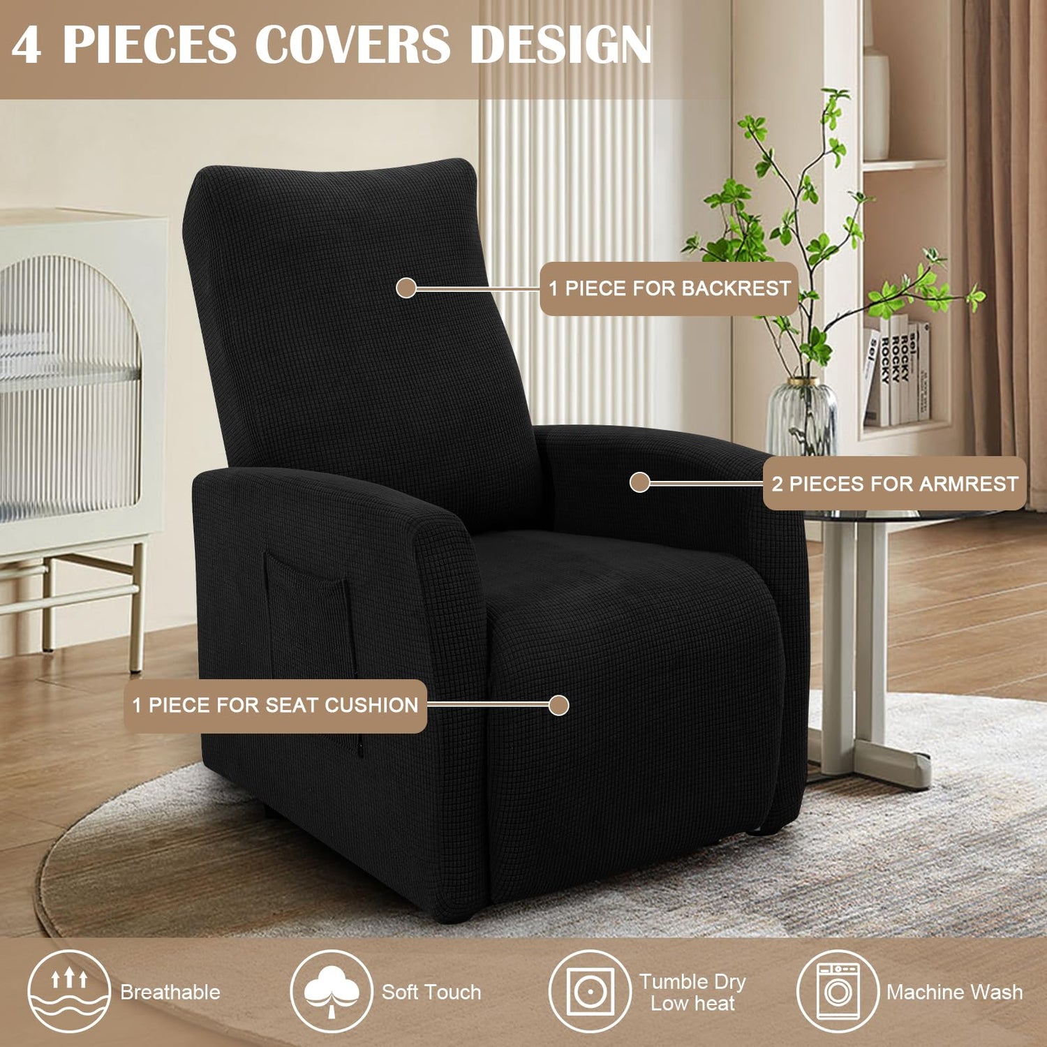 SearchI Recliner Chair Cover Jacquard Chair Covers 4 Piece, Small Recliner Sofa Slipcover for Home Theater Seating with Elastic Bottom, Recliner Protector with Pocket for Recliners, Black