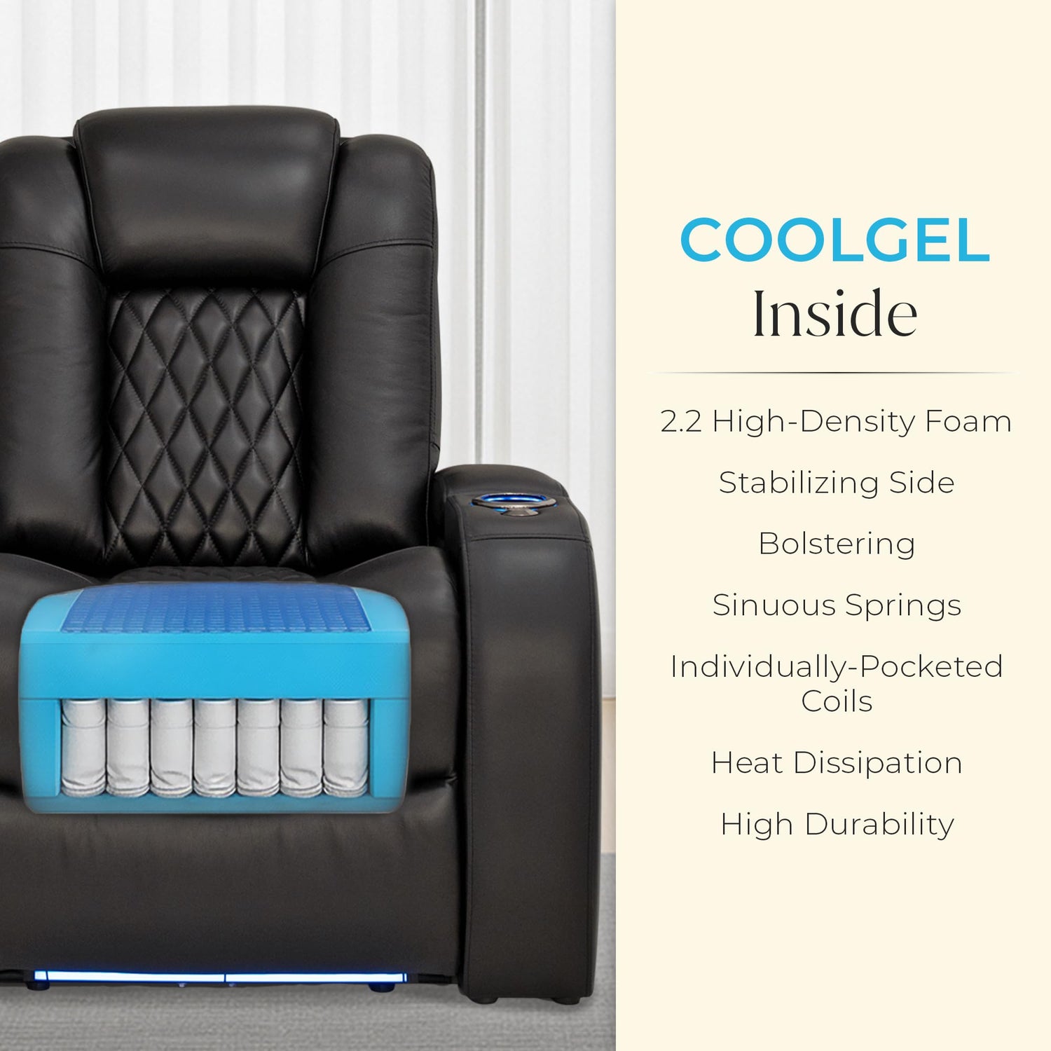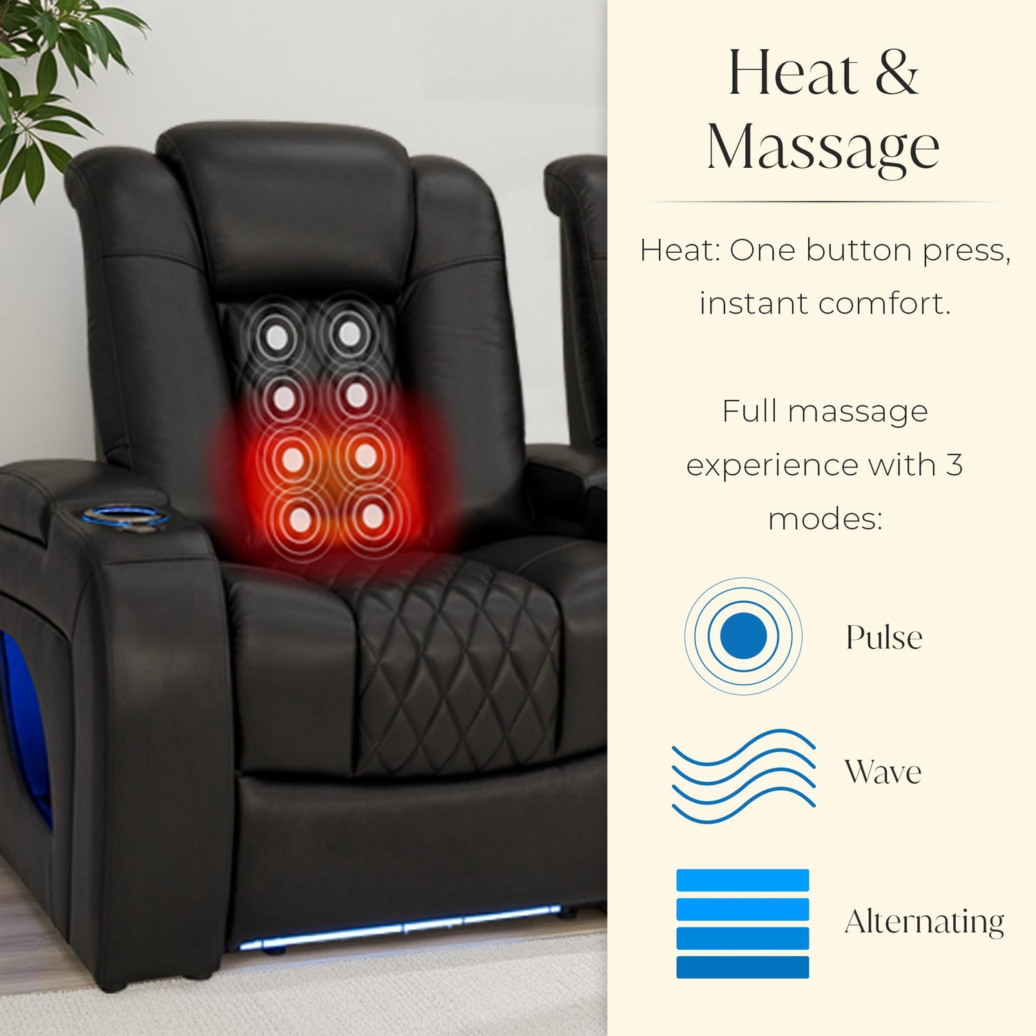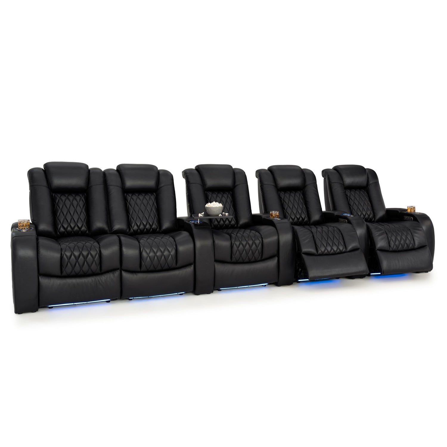 Seatcraft Virtuoso LT Zero-Gravity HeatZero Italian Leather Home Theater Seating, Heat & Massage, Power Headrest, Power Recline, Row of 5 Left Loveseat, Black