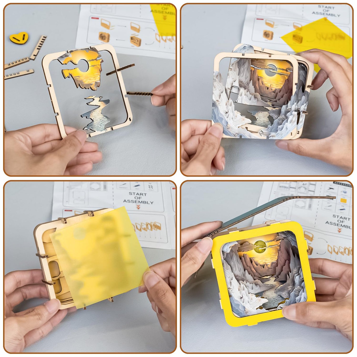 - [Superb Craftsmanship and Detail] - Made from durable 3-ply birch wood, the puzzle pieces have a smooth finish on both surface and edge. Precision laser-cutting gives the storybook lamp delicate and vivid details, highlighting the mini world within the 3D puzzle nightlight.