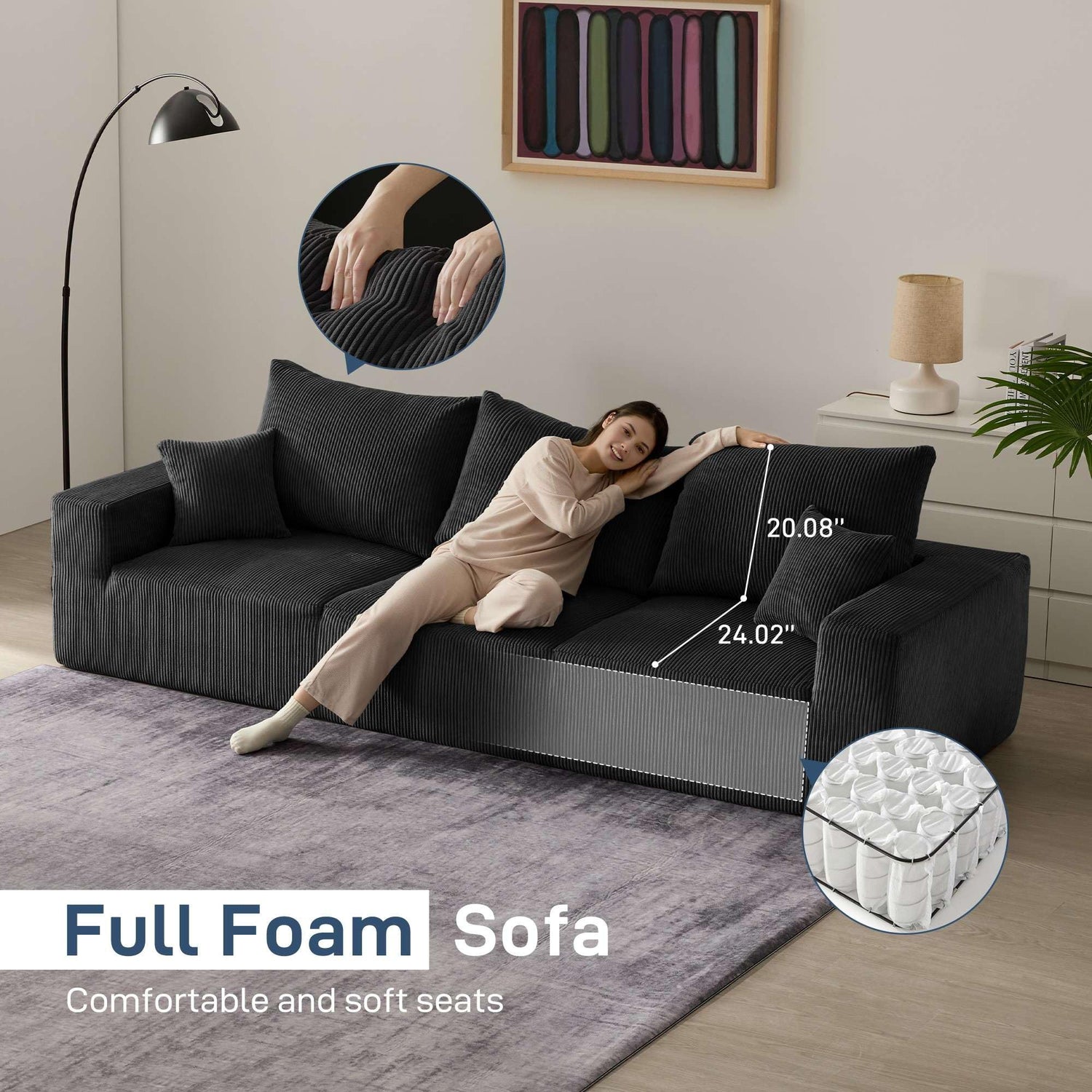 - After-sales service: Provide excellent customer service, please feel free to contact us with any questions, we will ensure your pleasant experience with efficient and considerate service, quick questions, so that you can enjoy the all-foam sofa with more peace of mind.