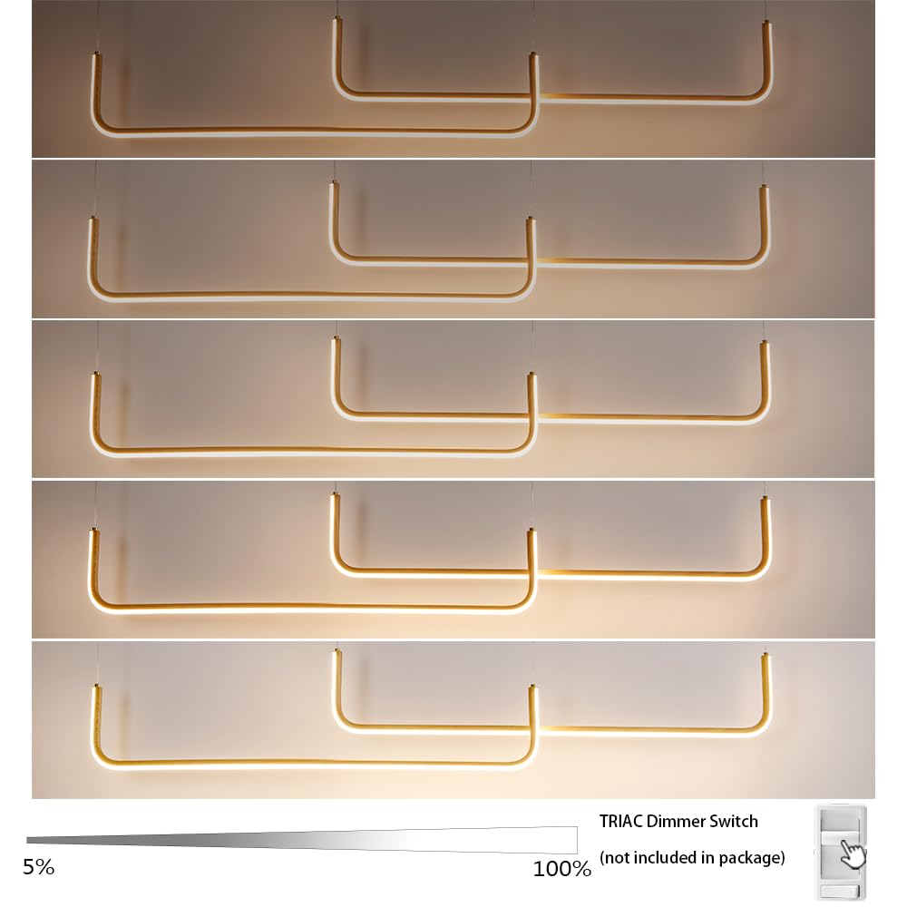 - [Dimmable LED Island Lights] 40W energy saving LED dimmable linear chandelier, 3000K eye protection warm light, stepless dimming brightness, you can adjust the brightness according to your preference. Dimmable with traditional TRIAC dimmer switches (switch not included in package).