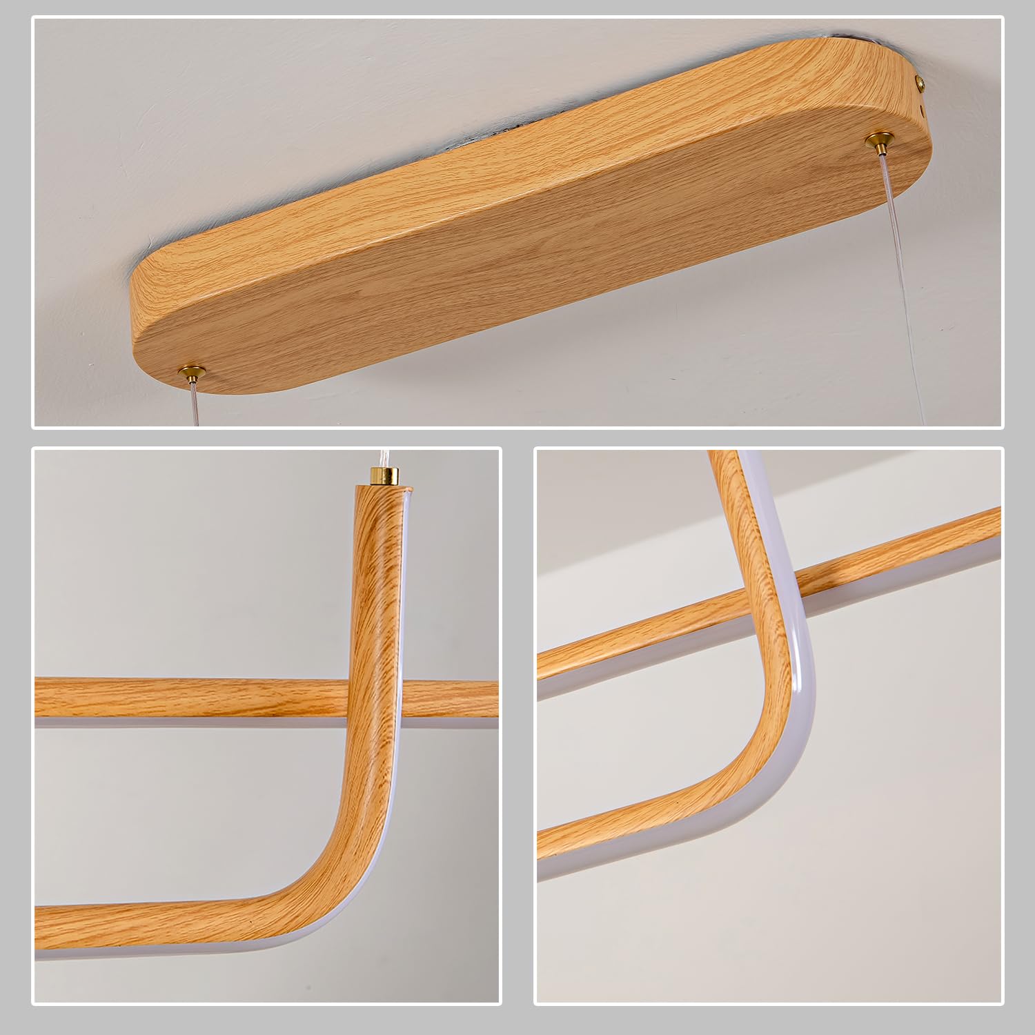 - [Modern Design] This LED linear wood chandelier is made of high quality aluminum lamp base and silicone lampshade. Woodgrain print on aluminum ensures a lightweight and durable light while maintaining the wood look. Modern and minimalist linear design of linear chandelier brings a stylish and modern look to your house.