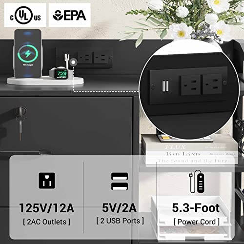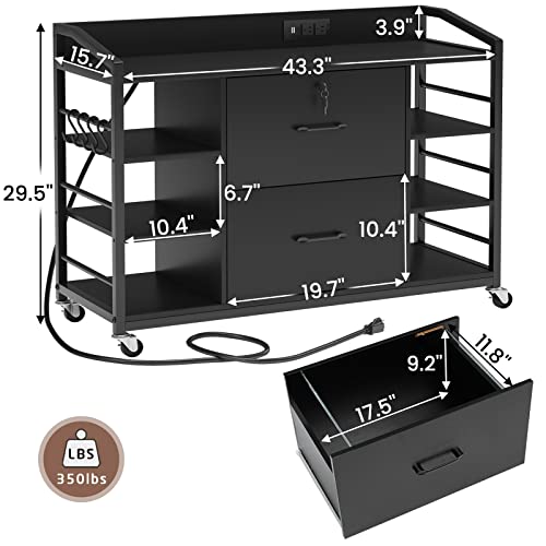 - 📁【Multifunctional Filing Cabinet】File cabinet for home office equipped with 2 AC outlets and 2 PowerIQ-enabled USB charging ports to provide power for up to 4 devices simultaneously. The desktop size is 44 ", which is large enough to use 2 machines at the same time, such as printer, scanner, copier, coffee machine, desk lamp, etc.