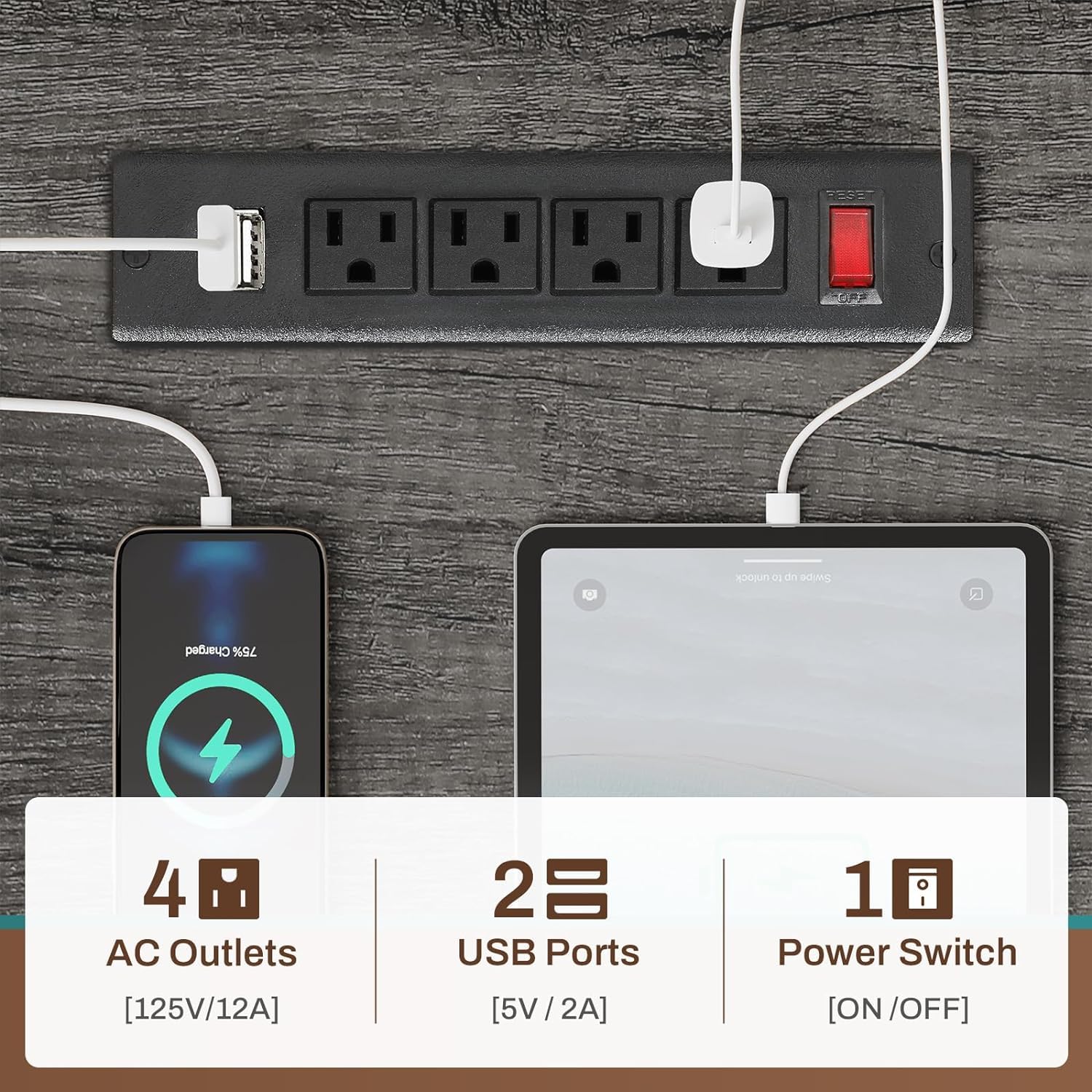 - 【Multifunctional】Home office desks equipped with 4 AC outlets and 2 PowerIQ-enabled USB charging ports with a switch to provide power for up to 6 devices simultaneously. One-button power off to ensure safe electricity use, which strengthens security. The monitor stand can easily raise the monitor to a suitable height, reducing the tension and pain of the back and neck. CPU shelf protects the host from moisture and dust.