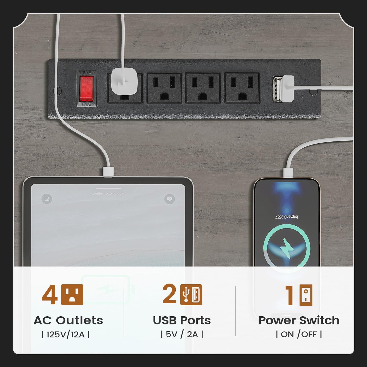 - 【Power Outlets】This executive L shape desk is equipped with 4 AC outlets, 2 USB charging ports to provides convenience for charging your gaming gear, tablet, printer or phone. The switch is convenient and safe to turn off power, no need to unplug appliances at all times.