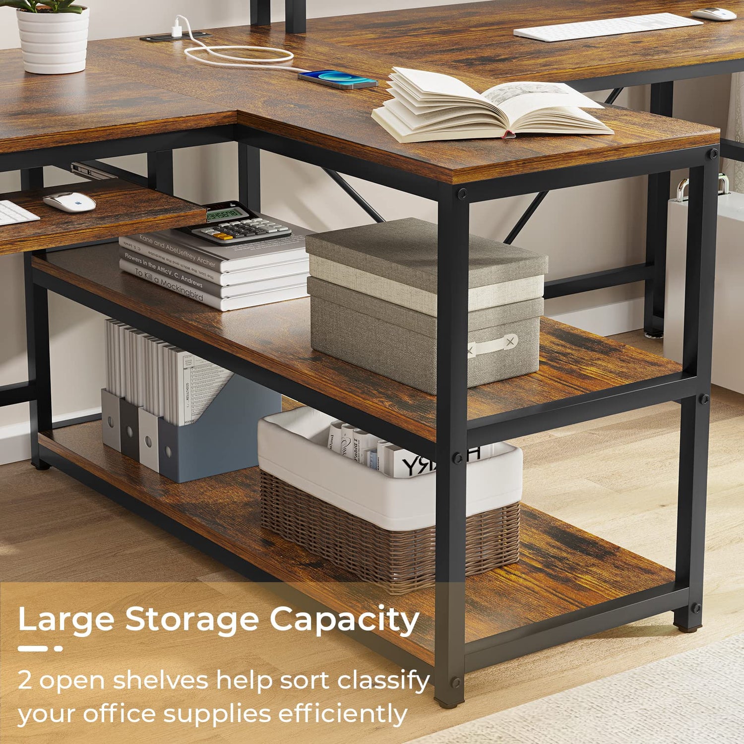 - 【Large Working Space & Storage】: 94.5”(L) x 21.6”(W) desktop can easily accommodate your laptop, keyboard, desk accessories. This double office desk features 2 shelves to storage, reduce tabletop clutter and add enough space for under-desk storage and organization. Metal frames are in 1.2 inches thick and hold up to 325lbs.