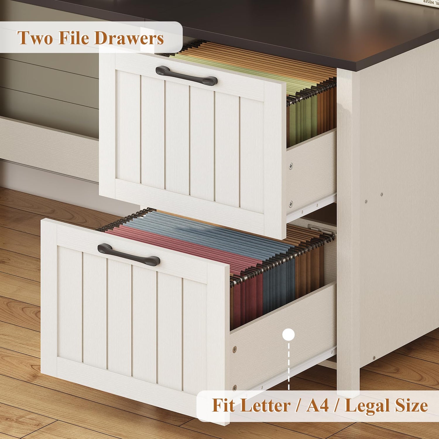 SEDETA Farmhouse 63" Executive Desk, Wood Computer Desk with Drawers and Storage Cabinet, Home Office Desk with File Drawer and Monitor Stand, Wood Desk for Work Study Writing, White