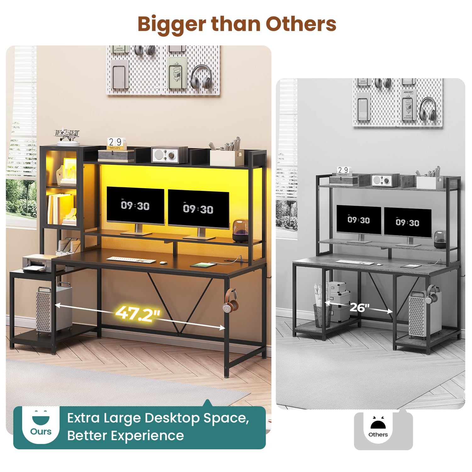 - 【Spacious Workspace】This 60-inch extra-long gaming table comes with a separate monitor stand and printer stand for ample desktop storage, ensuring a spacious operating area for you whether you're using it for a home office or gaming.