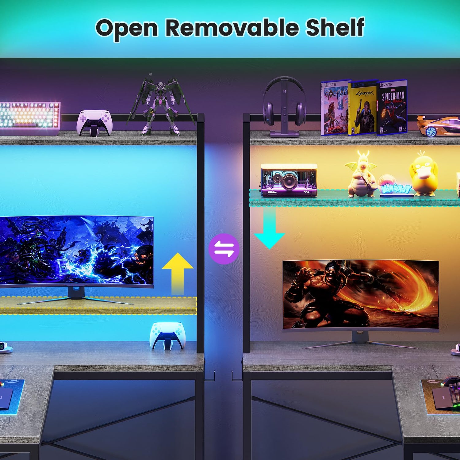 - 【What You Get】 The computer desk with hutch comes with storage shelves, a power outlet, 2 kinds of light lights, and 2-iron hooks for small space. 45.3"(L)*18.5"(W) dimension can easily accommodate your laptop, books, files, and other items. An ideal corner desk for small space to create excellent home office space.