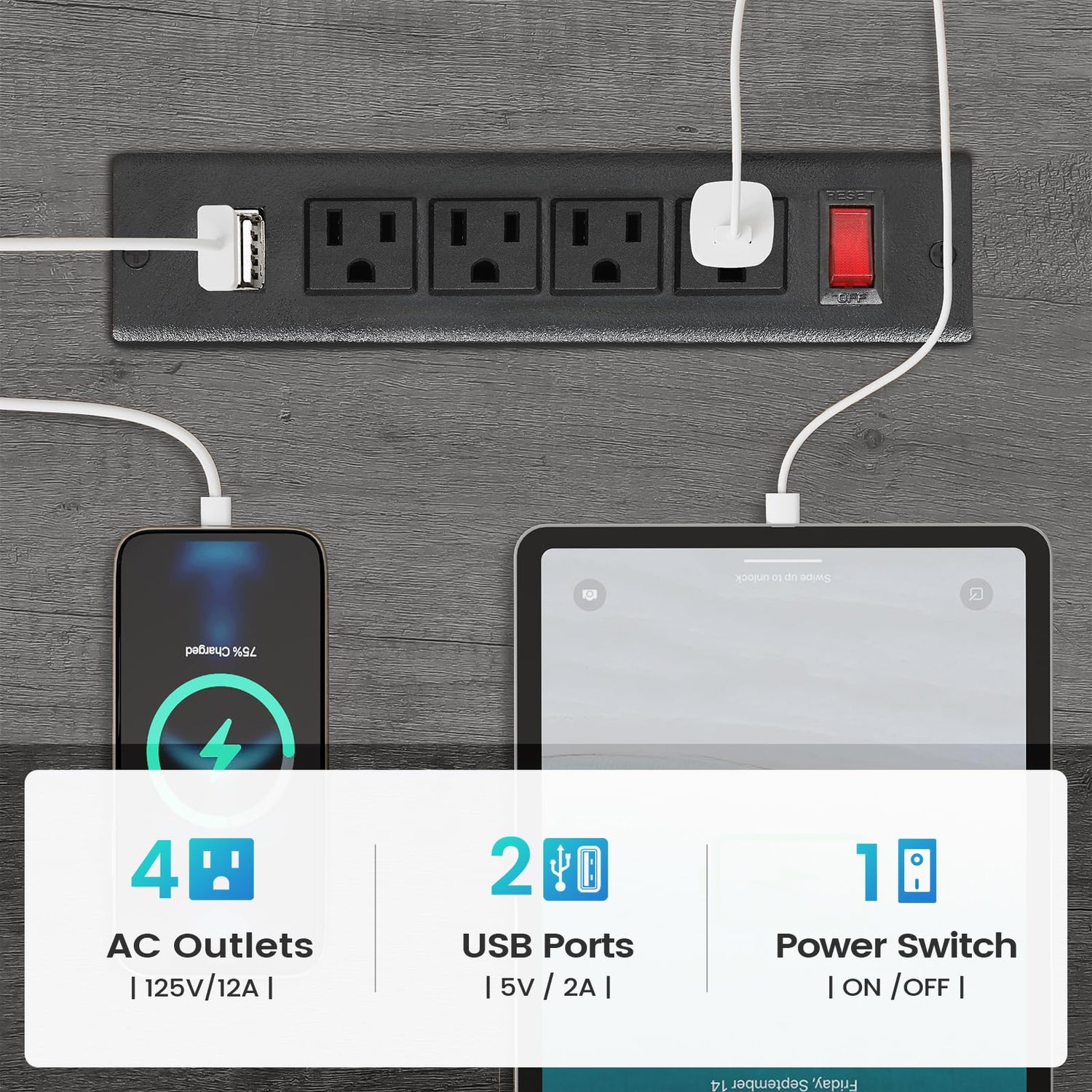 - 【 Charging Port】Our charging station includes 4-Outlet & 2 USB Ports to provide power for up to 6 devices simultaneously. Also includes an on-off switch, thanks to the on-off switch, one-button power off to ensure safe electricity use, which strengthens security. Power outlet allows you to charge cell phones, tablets, notebook, etc.