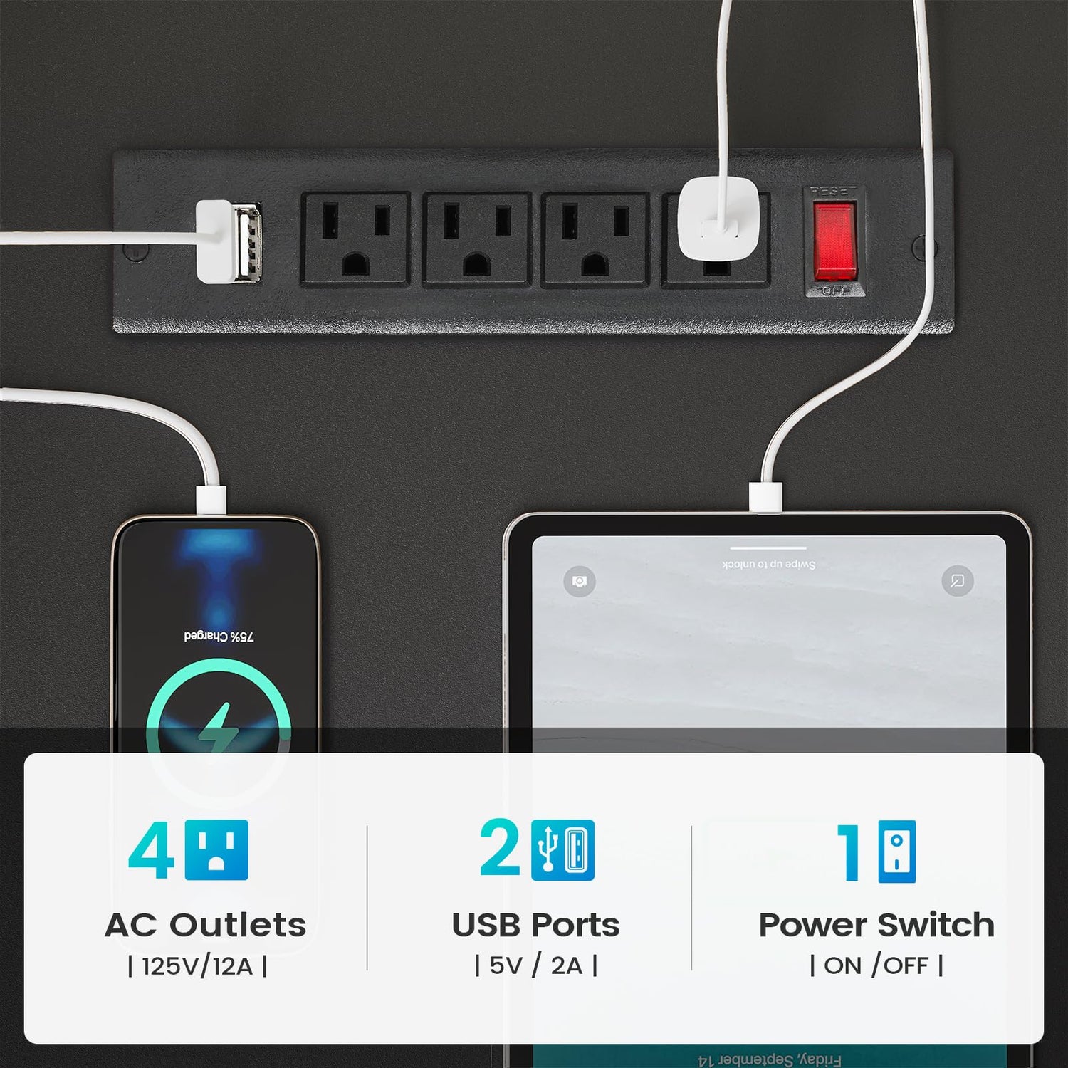 - 【 Charging Port】Our charging station includes 4-Outlet & 2 USB Ports to provide power for up to 6 devices simultaneously. Also includes an on-off switch, thanks to the on-off switch, one-button power off to ensure safe electricity use, which strengthens security. Power outlet allows you to charge cell phones, tablets, notebook, etc.