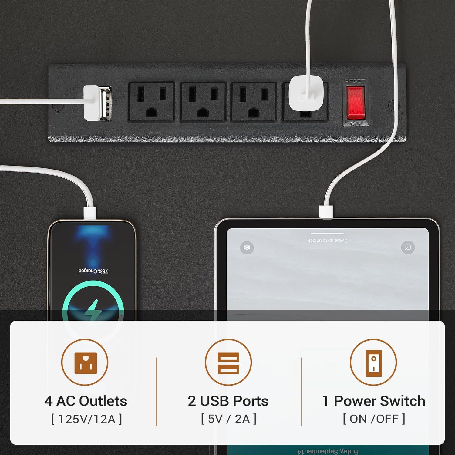- 【 Charging Port】Our charging station includes 4-Outlet & 2 USB Ports to provide power for up to 6 devices simultaneously. Also includes an on-off switch, thanks to the on-off switch, one-button power off to ensure safe electricity use, which strengthens security. Power outlet allows you to charge cell phones, tablets, notebooks, etc.