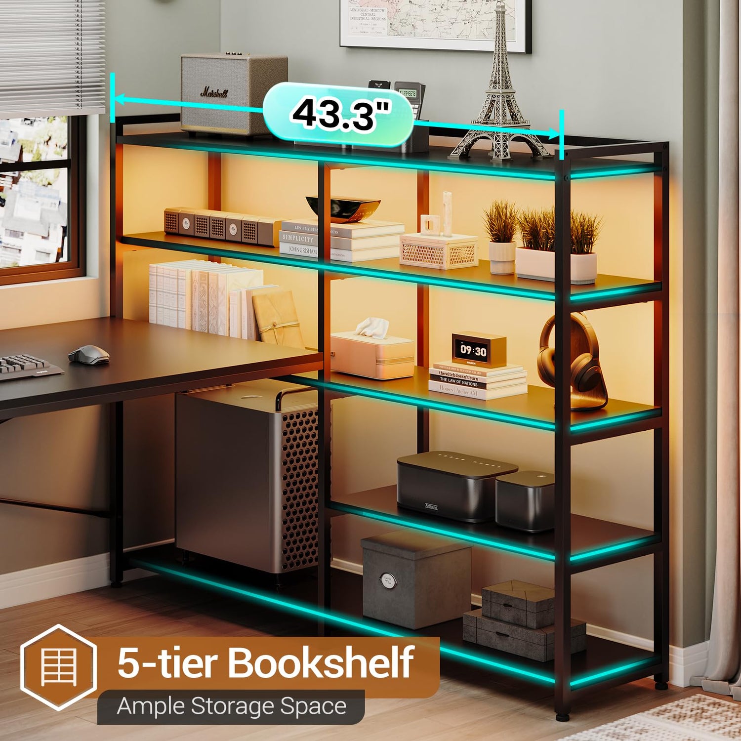 - 【Cool & Smart Led Light 】The gaming desk comes with RGB LED light, remote control via APP, Over 60000 colors, and 29 flashing modes for you to choose from. Led lights with music sync function, built-in sensitivity adjustable mic, led light color will change with the rhythm of the sound and music. This l-shaped gaming desk can help you play games in your home offices.