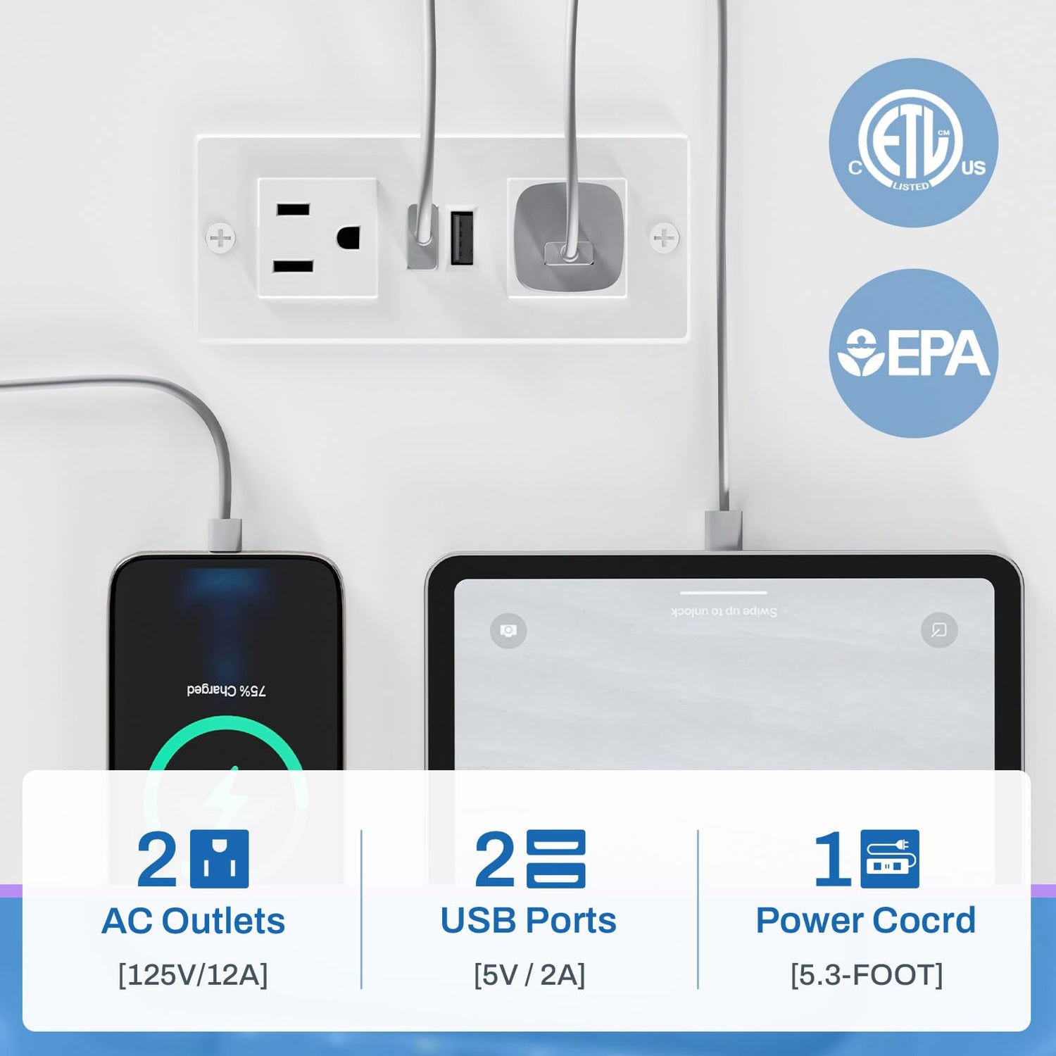 - ✔【Charging Port】Our charging station includes 2-Outlet & 2 USB Ports to provide power for up to 4 devices simultaneously. Power outlet allows you to charge mobile devices such as cell phones, tablets, bluetooth speaker, etc.