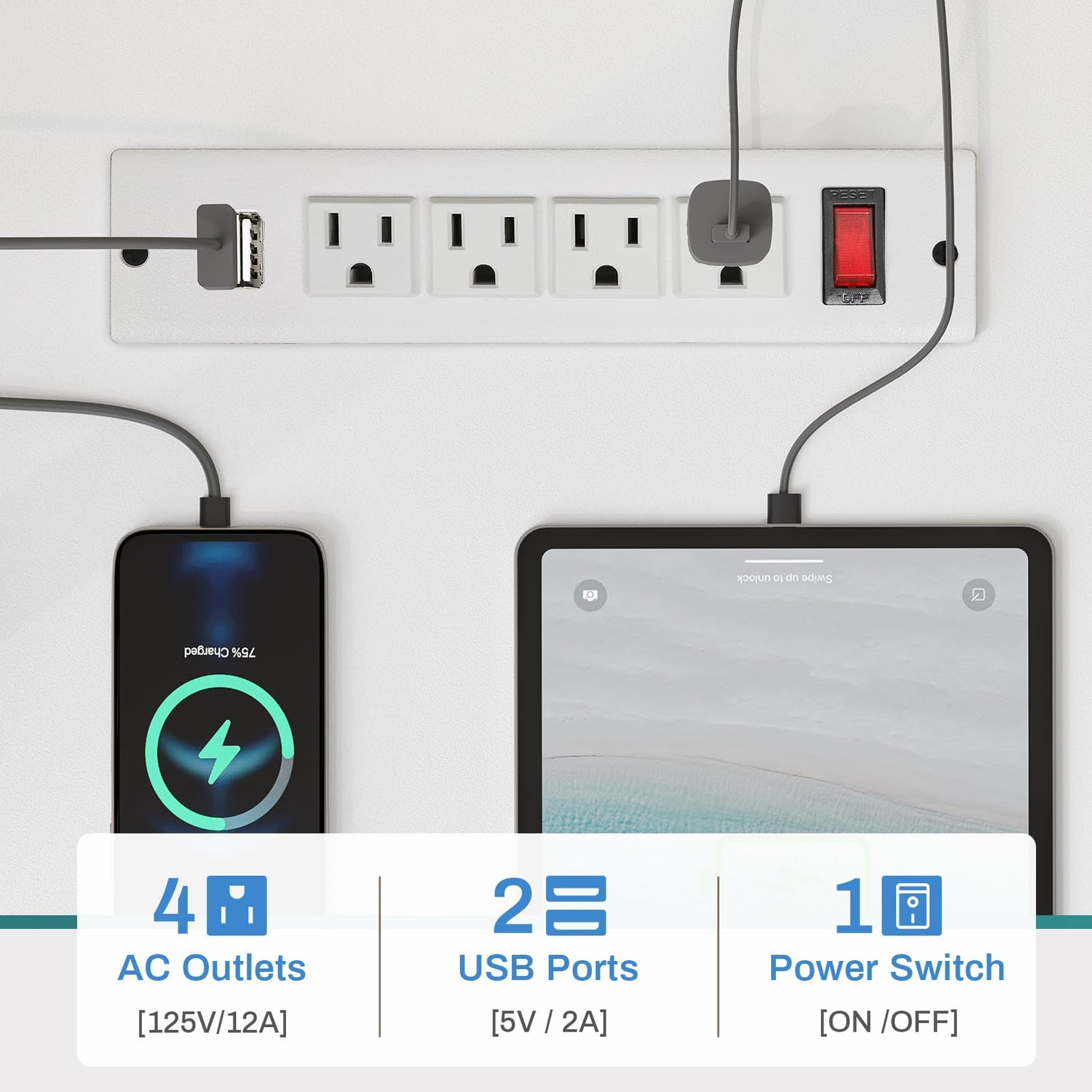 - 【 Charging Port】Our charging station includes 4-Outlet & and 2 USB Ports to provide power for up to 6 devices simultaneously. Also includes an on-off switch, thanks to the on-off switch, one-button power off to ensure safe electricity use, which strengthens security. Power outlet allows you to charge cell phones, tablets, notebooks, etc.