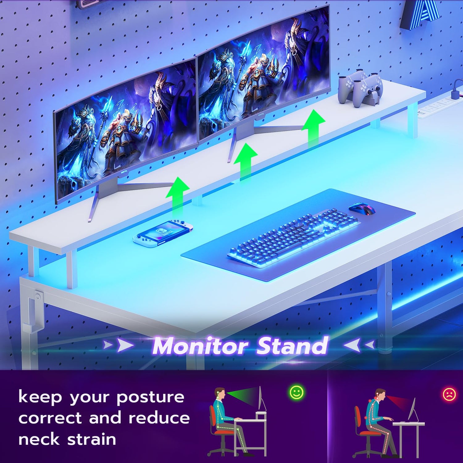 - 【Spacious Working Space】51"(L)*18.9"(W) dimension can easily accommodate your laptop, books, files, and desk accessories. The large workstation can hold 2 computers at the same time. Use this corner desk monitor riser to easily raise your monitor to just the right height, reduce back and neck strain and pain, and free up tons of workspace below.
