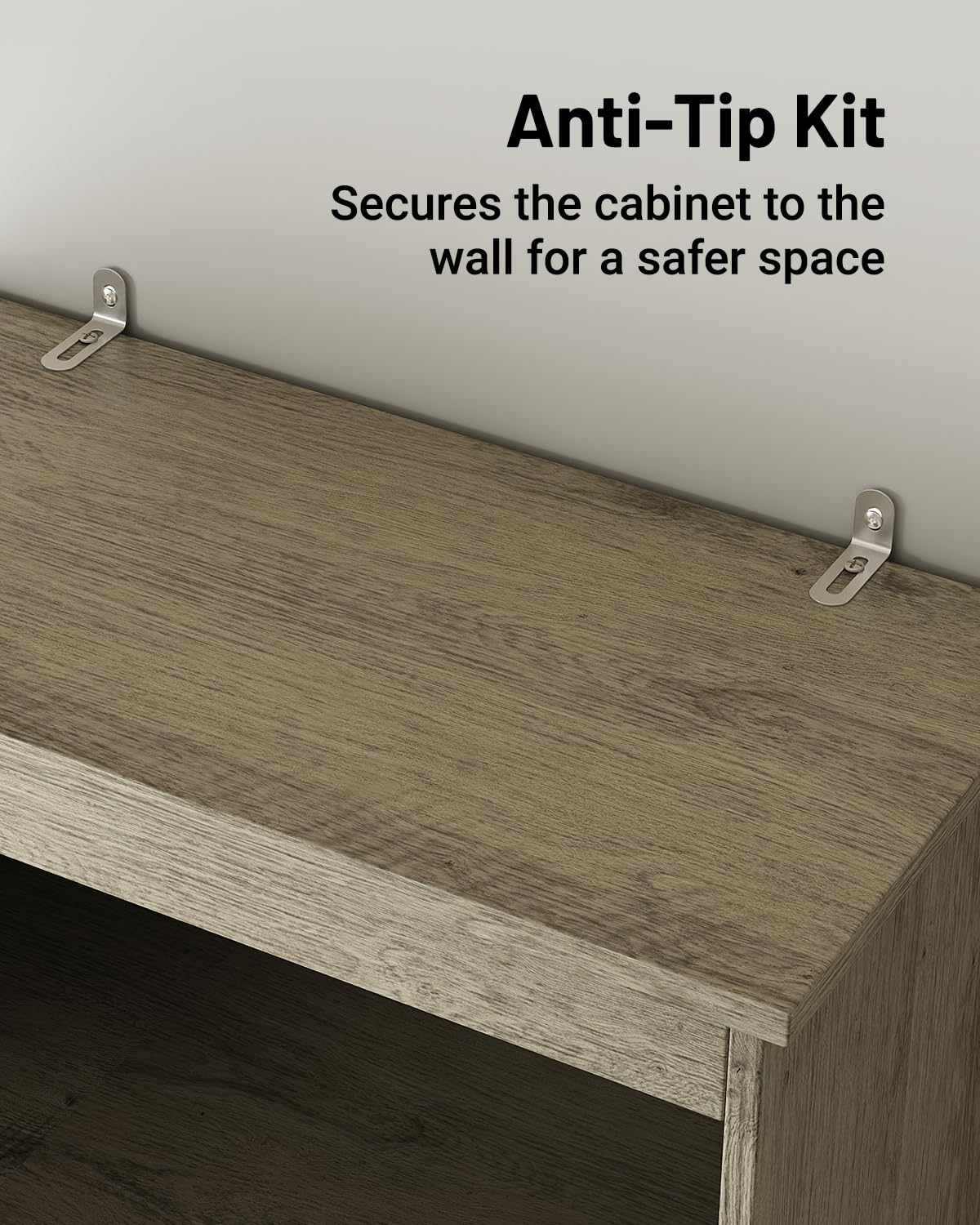 - Stylish Double Barn Doors: The lower cabinet is designed with double barn doors, combining functionality with a rustic aesthetic. The doors provide easy access to stored items while enhancing the overall look