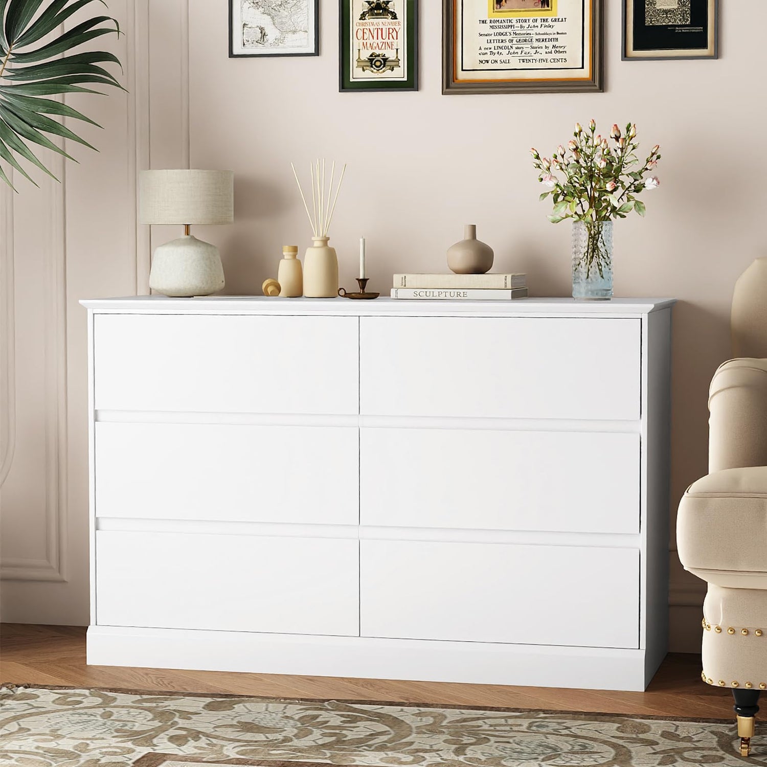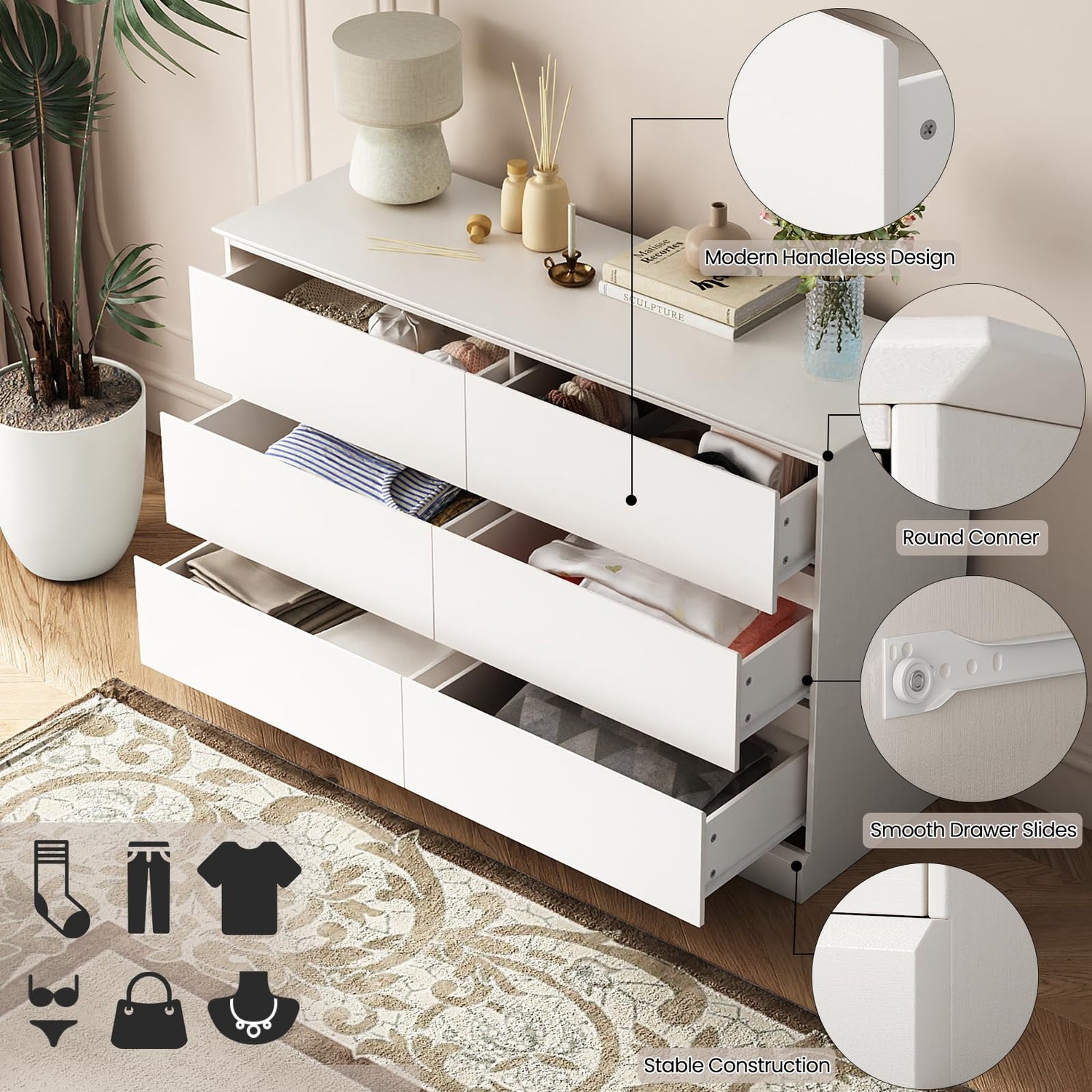 Seeday White Dresser, 6 Drawer Dressers for Bedroom, Modern Wooden Closet Dresser for Living Room, Entryway, or Hallway, White