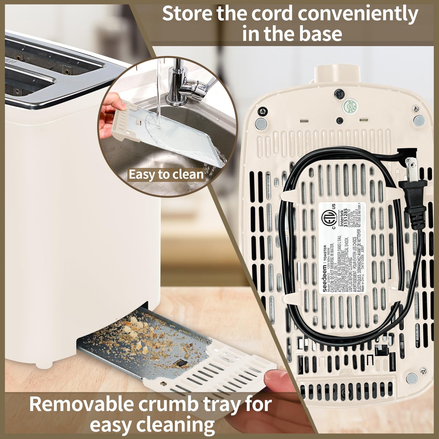 SEEDEEM Toaster 2 Slice, Bread Toaster with LCD Display, 7 Shade Settings, 1.4'' Extra Wide Slots Toaster with Cancel, Bagel, Defrost, Reheat Functions, Removable Crumb Tray, 900W, Cream White