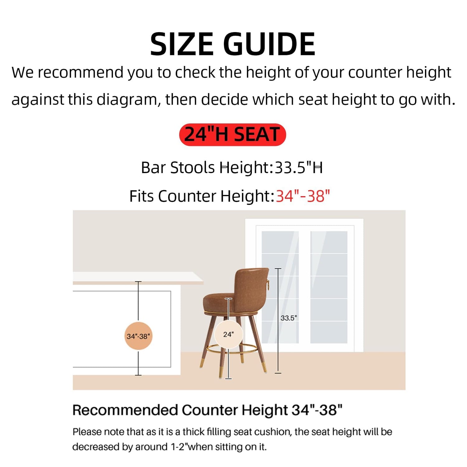 - Please note that this is 24 inch bar chairs. Seat height: 24" ,overall height is 33.5". The suitable counter height is 34" to 48". Please confirm your bar size before placing an order.