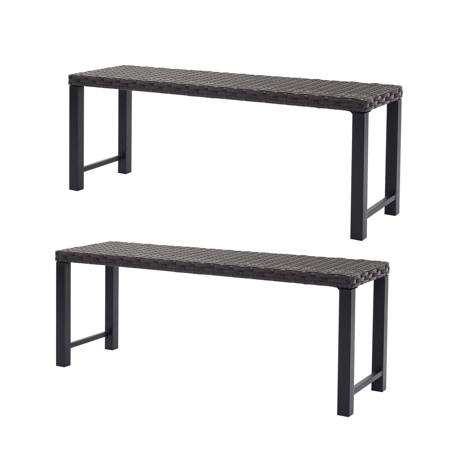 Seekverse 46" Outdoor Rattan Backless Bench Set of 2, All-Weather Patio Garden Bench for Backyard, Porch, or Lawn, Durable Steel Bench for Outdoor Spaces