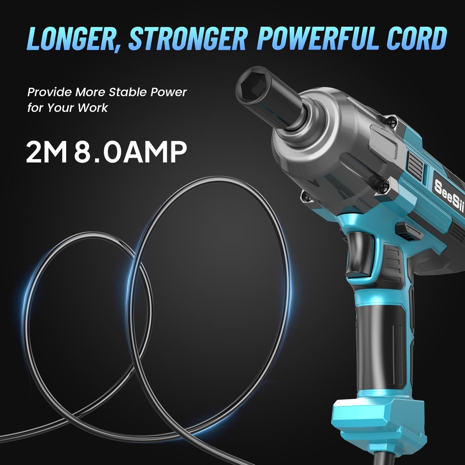 - Corded Reliability for Continuous Use: Unlike battery-powered wrench, our 8 Amp corded electric impact wrench provides uninterrupted power, ensuring you work through extended tasks without worrying about battery life. 2m long power cord ensures ample reach around your workspace