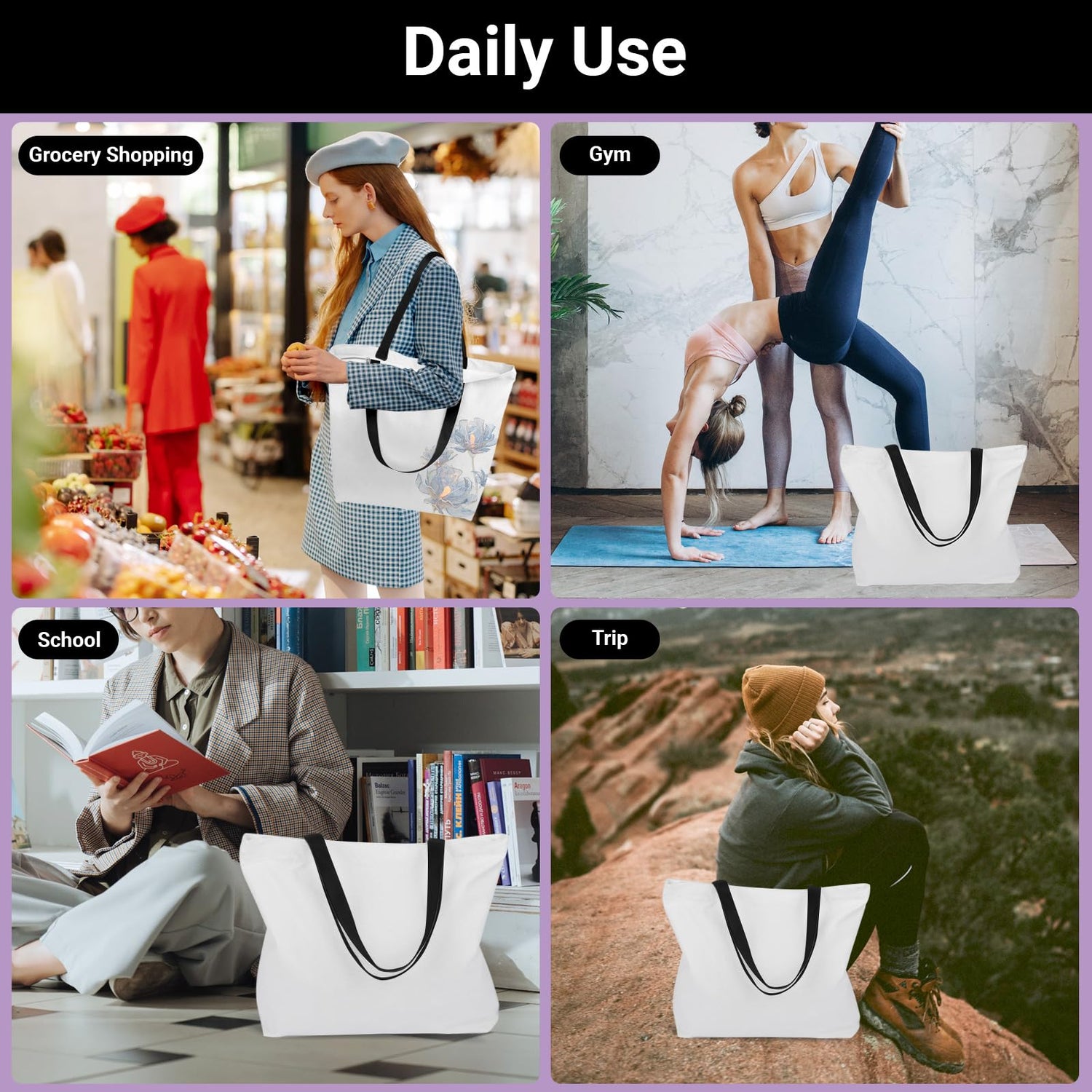 - Sturdy Cloth, Well Stitching: You will receive 10 large size sublimation tote bags with zipper whose size is 16.5"(L)x13"(H)x4"(W). Made from 12oz cotton, our canvas bags ensure durability that withstands the test of time. Precision stitching reinforces the bags, providing an extra layer of strength and reliability. You will not only receive a product that looks fantastic but also one that stands as a steadfast companion throughout the years, seamlessly integrating into our daily activities.