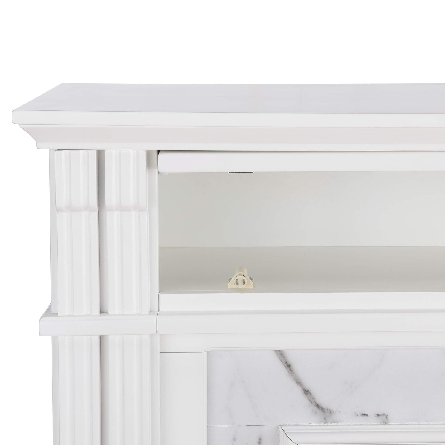 SEI Furniture Highgate Electric Fireplace with Hidden Media Shelf, New White with Faux Marble