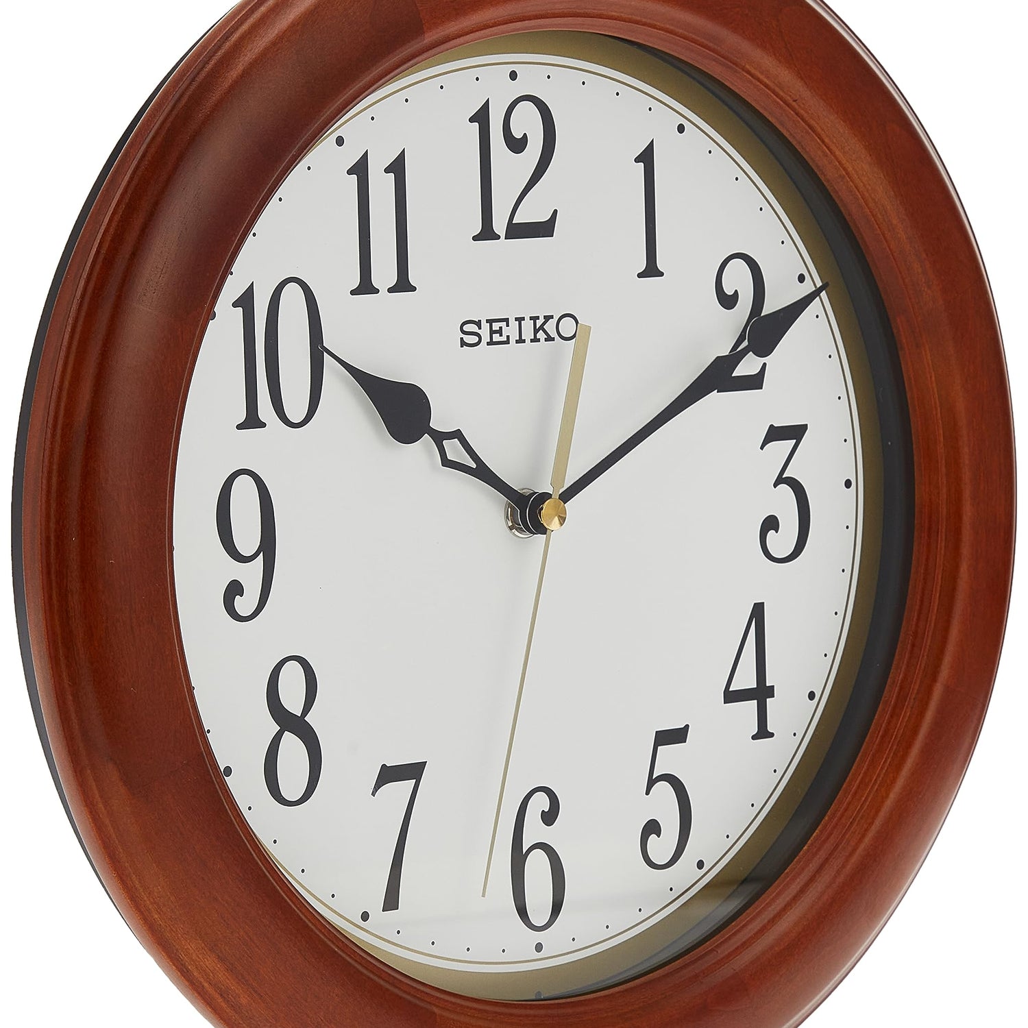 SEIKO 12 Inch Round Wood Classic Wall Clock, White,Brown