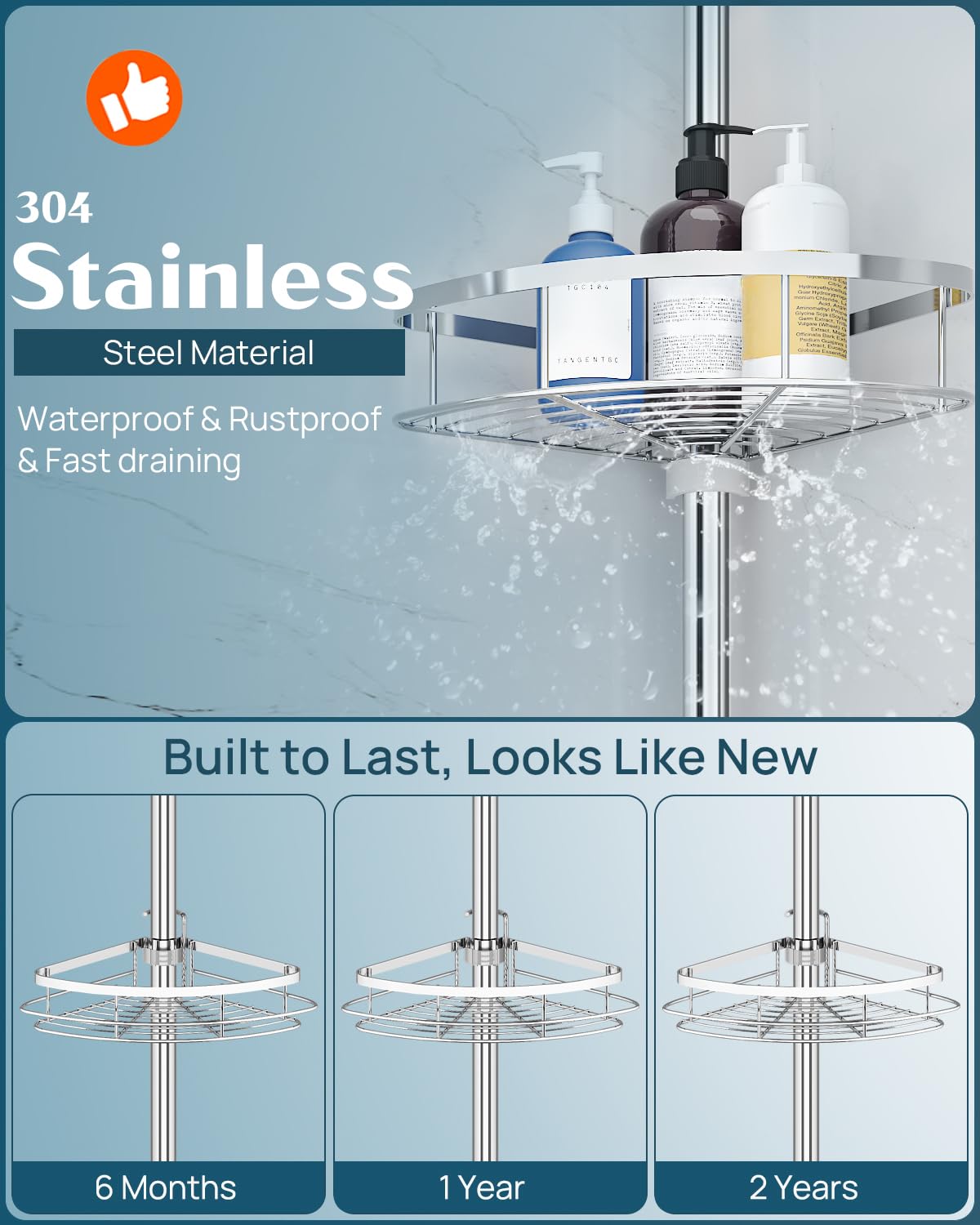 - [Sturdy with an 1 YEAR UP] Our bathroom shower caddy comes with an one year up. Should you have any questions or concerns, our dedicated customer support team is here to assist you promptly, ease your mind